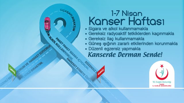 1-7 NİSAN KANSER HAFTASI SÖZLERİ, Kanserden değil, geç kalmaktan kork.Erken teşhis hayat kurtarır.Kansersiz Yaşam ElinizdeKanserden KorunabilirsinizKansersiz Yaşama DoğruKanserde Erken Teşhis Hayat KurtarabilirMeme Kanserinden KorunabilirsinizKendi Kendine Meme Muayenesi Hayatınızı KurtarabilirKendinize Bir “Şans Verin, Kendi Kendine Meme Muayenesi Yapın20 Yaş Üstü Bayanlar Her Ay Kendi Kendine Meme Muayenesi Yapıyor musunuz?Bayanlar Sağlığınız Parmaklarınızın Ucunda, Kendi Kendine Meme Muayenesi YapınızPersoneli ve Halk Elele, Kanser Sana Güle GüleSağlıklı Beslenmek Kanseri ÖnlerSigara kanserin en büyük tetikleyicisidir.Kanser, çoğalan bir orduya benzer.Kanser, küçük şikâyetlerle başlar.