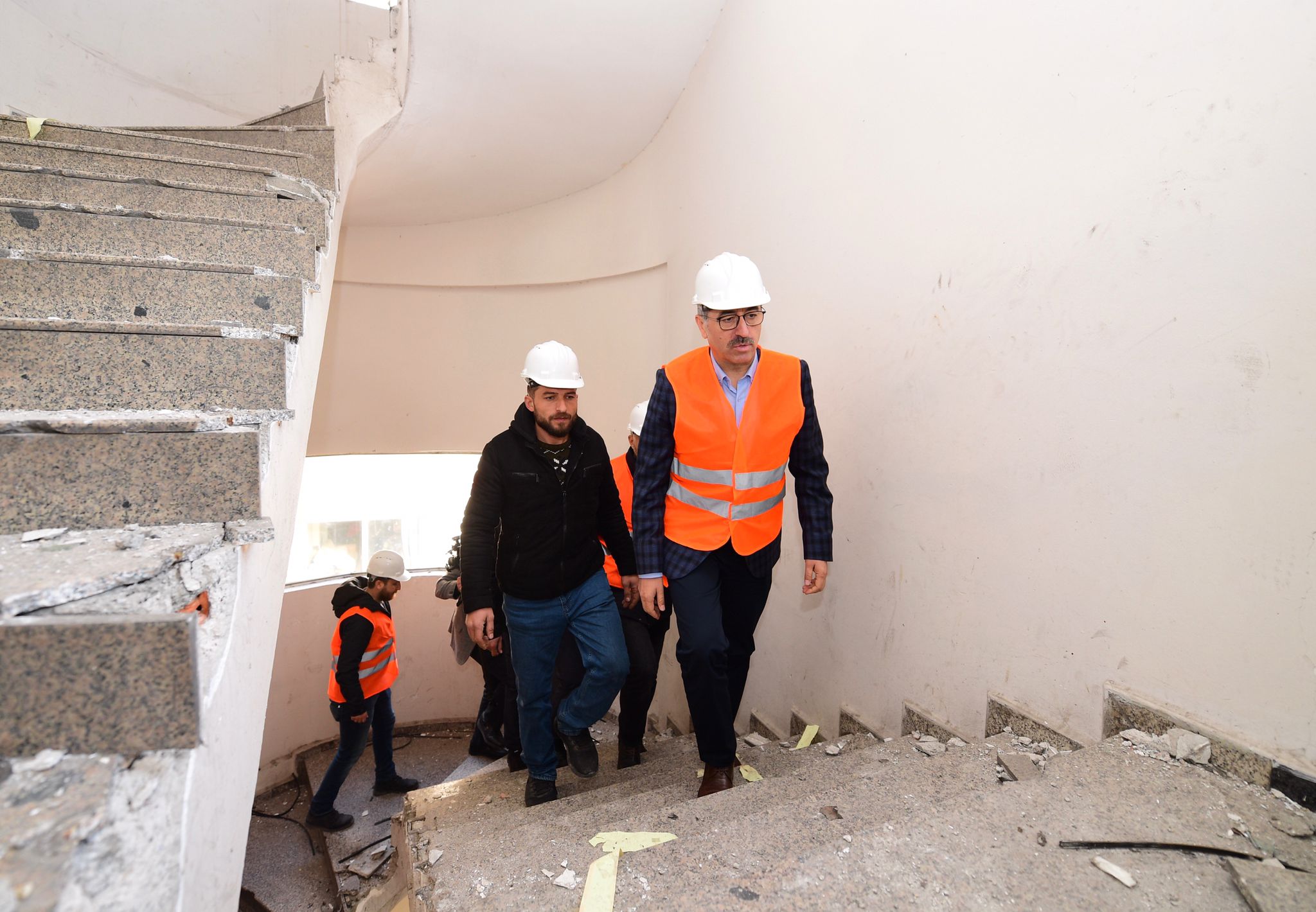 Kahramanmaraş Büyükşehir Belediye Başkanı Hayrettin Güngör, Şehir Meydan Projesi kapsamında yıkımına başlanan Özel İdare İş Merkezi’ndeki çalışmaları yerinde inceledi. Çevre Şehircilik ve İklim Değişikliği Bakanlığı ile işbirliğinde gerçekleştirilen projenin kent estetiği için önemli bir çalışma olacağını vurgulayan Başkan Güngör, “Burası Kahramanmaraş’ımızın tarihi dokusuyla bütünleşik, kardeş şehrimizin adını taşıyan Trabzon Caddesi’ne cephesi olan bir bölge. Yaklaşık 40 dönümlük bu alanda dönüşüm çalışması yürütüyoruz. Eski adliye ve AFAD binamızın yıkımını gerçekleştirdik. Şimdi de 18 katlı ve Google'da da yazdığınızda dünyanın en saçma binası olarak çıkan bu binanın yıkımını gerçekleştiriyoruz. 30 yıl önce o günün şartlarına göre yapılmış, ama yapıldığı günden bu yana hep eleştiri konusu olmuş. Öncelikle binanın civardaki tarihi adayı esas aldığımızda silueti bozması, bir diğeri de çok fonksiyonel olmaması gibi nedenlerle buradaki dönüşüm çalışmalarında bu binanın yıkımına başladık” diye konuştu.