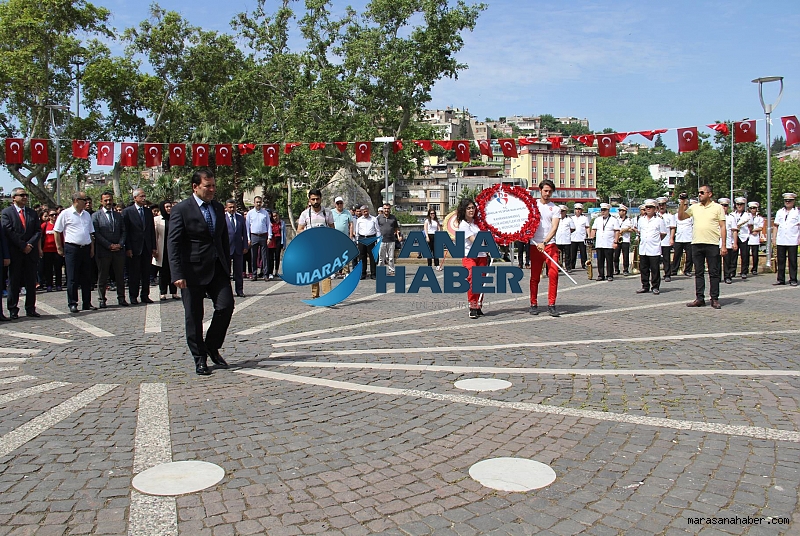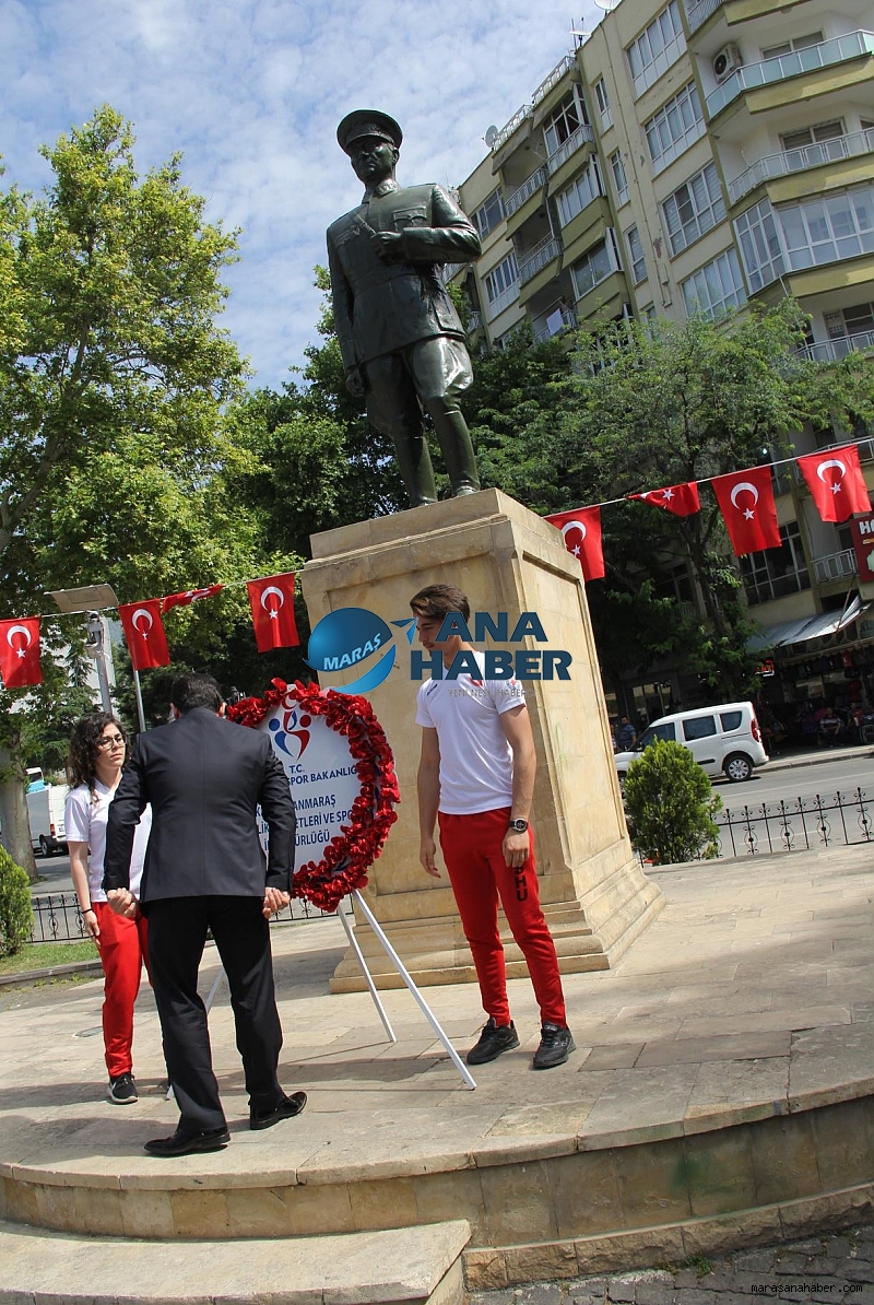19 Mayıs Atatürk’ü Anma Gençlik ve Spor Bayramı 81 ilde olduğu gibi Kahramanmaraş’ta da coşkuyla kutlandı. Kahramanmaraş Gençlik Hizmetleri ve Spor İl Müdürlüğü tarafından gerçekleştirilen kutlama etkinlikleri Saat 10.00 da Atatürk Anıtına çelenk Sunma Töreni İle başladı. Burada gençlik hizmetleri ve spor İl müdürü ali İhsan kabakcı Atatürk Anıtına Çelenk Sunarak 19 mayıs Atatürk’ü Anma Gençlik ve Spor Bayramı Kutlama etkinliklerini başlattı. Buradan 150 metrelik Şanlı Türk Bayrağı açılarak Şehir merkezinden Büyükşehir Belediye Bandosunun çaldığı marşlar eşliğinde şehir merkezinde kortej yürüyüşü yapıldı. Yürüyüş 19 mayıs atatürk’ü anma gençlik ve spor bayramı Kutlama gösterilerin yapılacağı Osman Sayın Spor Sayın Salonu da tamamlandı.Osman Sayın Spor Salonunda ki Program Saat 11.00 de başladı. Programa; kahramanmaraş Valisi Vahdettin Özkan, 2. Zırhlı Tugay Komutanı Adnan Köşker, İl Jandarma Komutanı J. Alb. Cafer Öz, Cumhuriyet Başa Savcısı İlker Yazıcı, Büyükşehir Belediye Başkanı Fatih Mehmet Erkoç, Onikişubat Kaymakamı Mustafa Çek, Onikişubat Belediye Başkanı Hanefi Mahçiçek, İl Emniyet Müdürü Doğan İnci, Mülki Amirler, Kurum ve Kuruluşların temsilcileri katıldılar. Kutlama Programlarını izlemek üzere Gençlerimiz, sporcularımız, Gazilerimiz ve çok sayıda vatandaşlarımız tribünler doldurdular.Kutlama Programı Saygı duruşu, İstiklal Marşımızın okunmasının ardından, Gençlik Hizmetleri ve Spor İl Müdürü Ali İhsan Kabakcı Açılış konuşması gerçekleştirdi. Kabakcı Konuşmasında özetle şunları söyledi: “Bu gün Gazi Mustafa Kemal Atatürk’ün Samsun’da tutuşturduğu kurtuluş meşalesinin Anadolu’da elden ele gönülden gönüle dolaşmasının 99. Yıl dönümü. Ogün Anadolu’nun Vatansever insanlarının selamlayan Ruhla ve duygularla sizlere hoş geldiniz diyorum. Milletimizin tüm onur gurur ve adaletiyle Atatürk’ün rehberliğinde tarih sahnesinde bir kere daha şaha kalkışının başlangıcı 19 Mayıs’tır…. Vatanını Milletini en çok seven görevini en iyi yapandır. Sözde değil samimi özde duygularla Gazi Mustafa Kemal Atatürk ve Kahraman Silah Arkadaşlarını ve bu Vatan İçin canlarını seve seve feda eden tüm aziz şehitlerimizi rahmet ve saygıyla anıyor. Bayramımızı Tebrik Ediyorum.” İl Müdürü Kabakcı’nın konuşmasını ardından Gençlik Merkezi Lideri Mehmet Kahraman Bir gençlik konuşması yaptı akabinde Gençlik Merkezi üyeleri Hacer Bolat ve Fuat Kuş birer şiir okudular. Şiirlere müteakiben Sportif Gösteriler gerçekleştirildi. Bu Gösteriler seyircilerden büyük alkış topladı. Programın sonunda ise Protok üyeleri ve vatandaşlara Basın Yayın Şube Müdürlüğü'nce Hazırlanan Gençlik Spor Fotoğraf Sergisi, Gençlik Merkezimizin ürünlerini sergilediği stantlar ve Spor Şube Müdürlüğünce hazırlanan Spor branşlarına yönelik stantlar hakkında Gençlik Hizmetleri ve Spor İl Müdürü Ali İhsan Kabakcı misafirler bilgiler verdi.