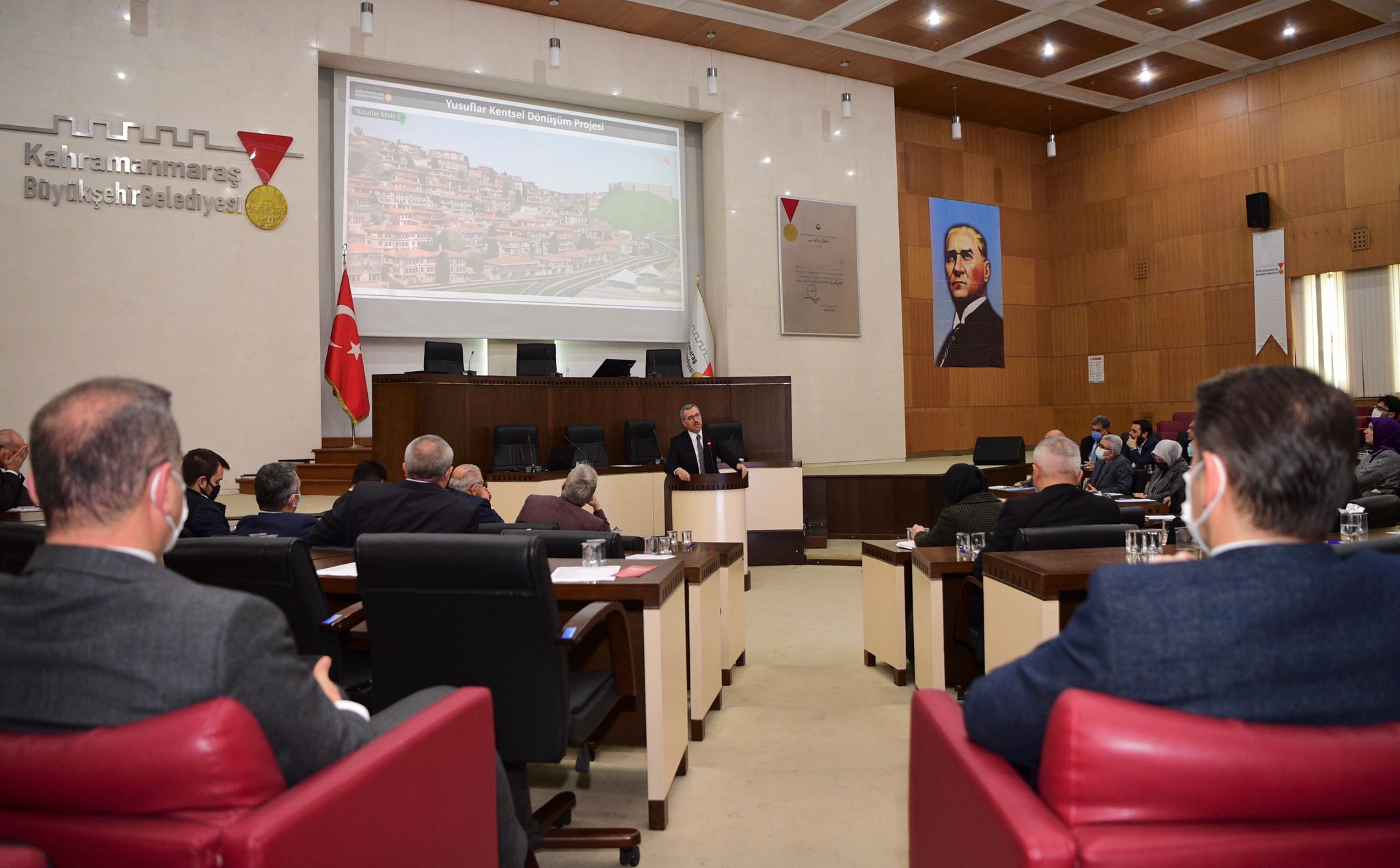 Büyükşehir Belediye Başkanı Hayrettin Güngör, “Göreve geldiğimiz günden itibaren şehrimizin birçok noktasında değişim ve dönüşüm projeleri hayata geçirdik. Bunların başında Tarihi Maraş Kale’miz yer alıyor. Hamdolsun tarihi kalemizde restorasyon çalışmalarımızı tamamladık. Diğer bir tarihi mekân olan Kapalı Çarşı’mızda 70 işyerini ve 9 kapısını kapsayan cephe yenileme çalışmalarımızı tamamladık. Hamdolsun cephemizi siluete yakışır bir hale getirdik. Şehrimiz için hayata geçireceğimiz en önemli projelerden bir tanesi de Valilik Meydan Projesi. Şehrimizin tam ortasında, kent estetiğini bozan ve işlevselliği bulunmayan İl Özel İdaresi’ni de içine alan yaklaşık 40 dönümlük alanda yeni bir proje hayata geçireceğiz. İnşa edeceğimiz yeni meydanda en az bin 500 araçlık bir otopark, yeni cazibe alanları, yeme içme mekânları ve sosyal alanlar yer alacak” ifadelerini kullandı.