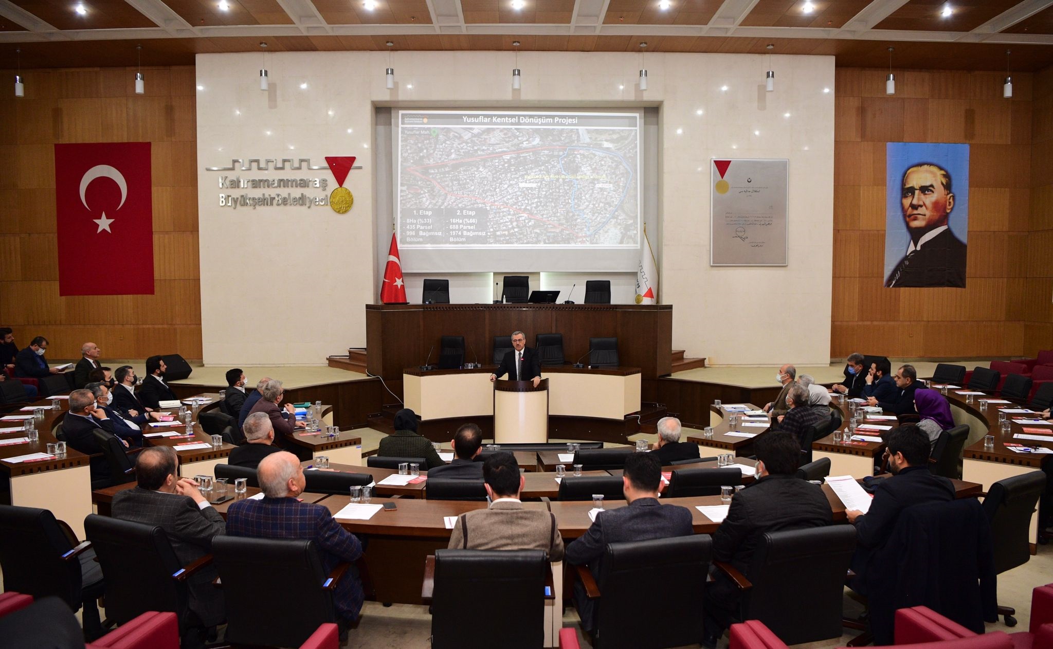 Kahramanmaraş Büyükşehir Belediyesi, Dulkadiroğlu ve Onikişubat 2022 Yatırım Yılı toplantısı gerçekleştirildi. Meclis Toplantı Salonu’nda gerçekleştirilen programa Büyükşehir Belediye Başkanı Hayrettin Güngör, AK Parti İl Başkanı Fırat Görgel, Dulkadiroğlu Belediye Başkanı Necati Okay, Onikişubat Belediye Başkanı Hanefi Mahçiçek, meclis üyeleri, ilçe teşkilat başkanları, Büyükşehir ve KASKİ bürokratları katıldı. AK Parti İl Başkanı Fırat Görgel yaptığı konuşmada, “Büyükşehir Belediye Başkanımız Hayrettin Güngör ve ilçe belediye başkanlarımızla şehrimizi daha nasıl geliştirebiliriz, hemşehrilerimiz için neler yapabiliriz şeklinde yaptığımız istişareler doğrultusunda şehrimiz için projeler üretmeye ve hayata geçirmeye devam ediyoruz. İnşallah 2022 yılı şehrimiz için bir yatırım yılı olacak” ifadelerini kullandı.