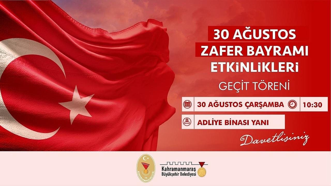 Kahramanmaraş Büyükşehir Belediyesi, 30 Ağustos Zafer Bayramı’nın 101. yıl dönümünde bir dizi program gerçekleştirileceğini duyurdu. Zafer Bayramı kutlamaları, 30 Ağustos Çarşamba günü saat 09.00’da Atatürk Meydanı’nda gerçekleştirilecek çelenk sunma töreni ile başlayacak. Çelenk sunma töreninin ardından Şeyhadil Mezarlığı’ndaki Şehitlik ziyaret edilerek şehitler kabirleri başında dualarla anılacak. Devamında Valilikte gerçekleştirilecek protokol tebrikinin ardından saat 10.30’da Kahramanmaraş Adliye binası yanında geçit töreni ve çeşitli etkinlikler düzenlenecek.