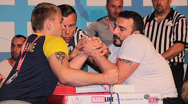 Türkiye'nin ev sahipliğinde bu yıl 40'ıncısı Antalya'da düzenlenen Dünya Bilek Güreşi Şampiyonası, devam ediyor.