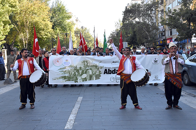 GÖÇGÜNLER: ABDAL HALİL AĞA İNANCIN SEMBOLÜDÜRAbdal Halil Ağa'nın torunu ve abdal halil ağa derneği başkanı doğan göçkünler ise, "Tam 100 yıl önce Mondros Müzakeresi imzalanmış, şehrimizi önce İngilizlere sonra da Fransızlara teslim etmişlerdi. Yokluk, sefalet, perişanlık hat safhadadır. Dedem Abdal Halil Ağa geçimini davul çalarak sağlamaktadır. Dedem de herkes gibi bir kuru soğana muhtaçtır. Dönemin şartları çok ağırdır. 100 yıl önce Fransızlar şehri teslim almaya gelirler. 1914'te Maraş Milletvekili seçilen Maraş'ta bulunan 21 çiftliğin 16'sının sahibi, Kapalı Çarşı'da birçok dükkanı bulunan ve kentin en zengin adamı olan Ermeni Hırlakyan dedeme bir kese altın göndererek Fransızların Maraş'a girişini kutlamak ve törenle karşılamak üzere davul çalmasını ister. Dedem ise o yoklukta o altınları reddederek, "Ben din kardeşlerimin bağrına bu tokmağı vurmam" der. İşte bizler o dedenin torunlarıyız. Bugünde aynı inançla vatan için canımızı seve seve vermeye hazırız. Abdal Halil Ağa inancın sembolüdür" ifadelerini kullandı.