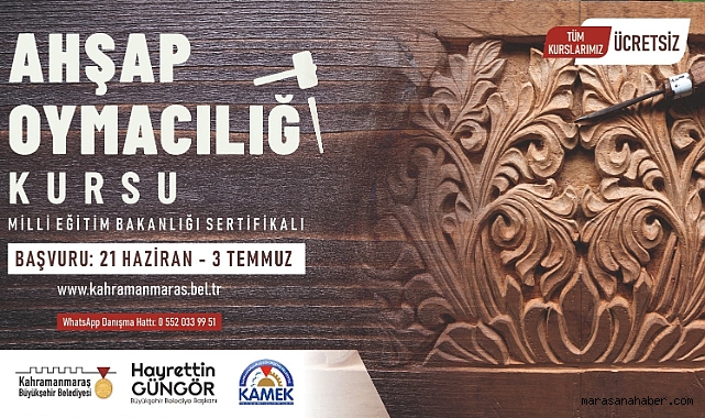 Kahramanmaraş Büyükşehir Belediyesi, sosyal belediyecilik hizmetleri kapsamında çeşitli etkinlikleri vatandaşlarla buluşturmayı sürdürüyor. Vatandaşların kişisel gelişimlerine ve sosyalleşmelerine katkı sağlamak için çeşitli eğitimler, seminerler ve atölyeler düzenleyen Büyükşehir Belediyesi, Meslek Edindirme ve Sanat Eğitimi Kursları (KAMEK) bünyesinde oluşturulan Ahşap Oymacılığı Kursu’na ön kayıtların başladığını duyurdu. 18 yaş ve üzeri vatandaşların katılabileceği kursa https://kahramanmaras.bel.tr/duyuru/2023/06/21/ahsap-oymaciligi-kursu-basvuru-formu adresi üzerinden çevrimiçi başvuru yapılabiliyor. Uzman eğitmenler tarafından ücretsiz olarak verilecek eğitimleri başarıyla tamamlayan kursiyerlerin Milli Eğitim Bakanlığı onaylı sertifika almaya hak kazanacağı Ahşap Oymacılığı Kursu’na son başvuru tarihi 3 Temmuz Pazartesi. Büyükşehir Belediyesi’nden yapılan açıklamada, kursa ve başvurulara ilişkin detaylı bilgiye 0552 033 99 51 numaralı WhatsApp danışma hattından ulaşılabileceği belirtildi.