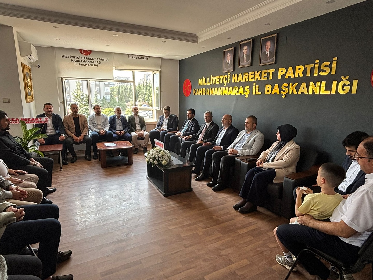MHP İl Binası'nda gerçekleşen samimi ziyarette, AK Parti heyeti yeni görevlerinde Başkan Metehan ve ekibine başarı dileklerini sundu.Ziyaretin ardından yapılan açıklamada, "MHP Milliyetçi Hareket Partisi Kahramanmaraş İl Başkanlığını ziyaret ederek, MHP Milliyetçi Hareket Partisi Kahramanmaraş İl Başkanı Sayın Mansur Metehan ve yeni dönem Yönetim Kuruluna hayırlı olsun ve başarı dileklerimizi ilettik" ifadelerine yer verildi.