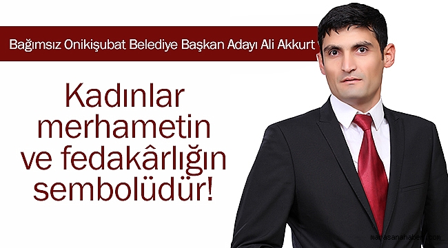 Bağımsız Onikişubat Belediye Başkan Adayı Ali Akkurt, 8 mart Dünya Kadınlar Günü dolayısıyla yayımladığı mesajında; kadının analık sıfatı