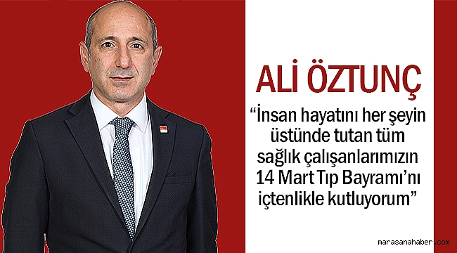 adayı ve CHP Kahramanmaraş Milletvekili Ali Öztunç, 14 mart tıp bayramı dolayısıyla bir kutlama mesajı yayımladı.