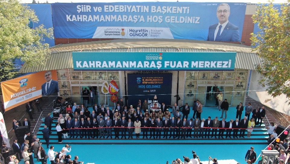 Kahramanmaraş Büyükşehir Belediyesi tarafından bu yıl 8’incisi düzenlenen Uluslararası Kitap ve Kültür Fuarı’nın açılış töreni gerçekleştirildi. Kahramanmaraş Fuar Merkezi’nde (KAFUM) gerçekleştirilen açılış töreninin onur konuğu ise Cumhurbaşkanlığı İletişim Başkanı Prof. Dr. Fahrettin Altun oldu. Açılış töreninde Büyükşehir Belediye Başkanı Hayrettin Güngör’ün yanı sıra Vali Ömer Faruk Coşkun, MHP Kahramanmaraş Milletvekili Sefer Aycan, KSÜ Rektörü Prof. Dr. Alptekin Yasım, ilçe belediye başkanları, kurum müdürleri, STK temsilcileri ve çok sayıda kitapsever de yer aldı. Protokol konuşmalarının ardından kesilen kurdeleyle Kahramanmaraş 8. Uluslararası Kitap ve Kültür Fuarı’nın açılışı gerçekleştirildi.