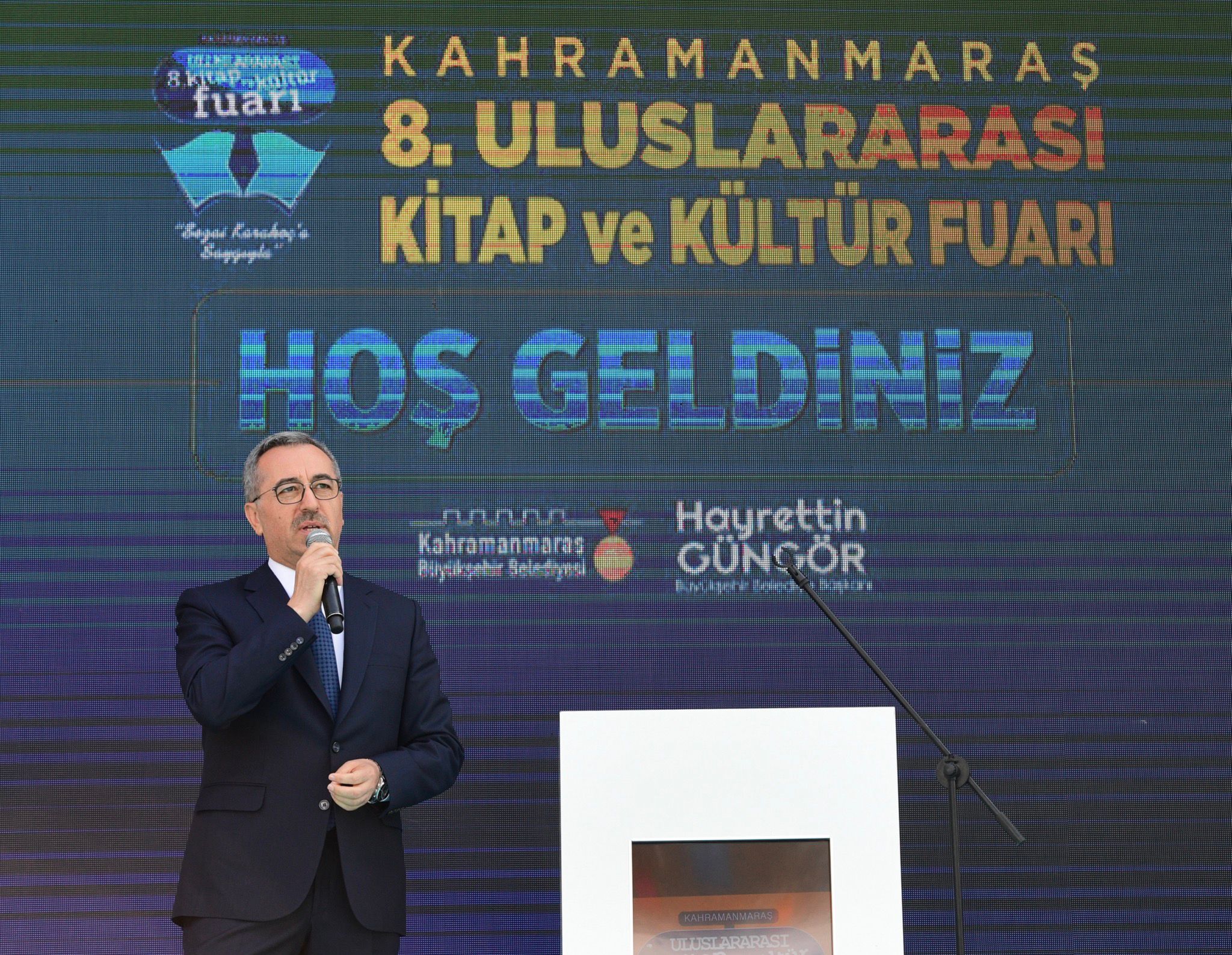 Programın açılış konuşmasını yapan Büyükşehir Belediye Başkanı Hayrettin Güngör, “Bugün Kahramanmaraş’ımızda 8’incisini gerçekleştirdiğimiz Uluslararası Kitap ve Kültür Fuarımızın açılışını yapıyoruz. 8 yıl önce başlatılan ve bugüne kadar devam eden kitap fuarımızda her geçen yıl daha fazla ziyaretçimizi ağırlıyoruz. Bu sene de kitap ve kültür fuarımızda 210 yayınevi, 350 yazar ve şair kitapseverlerle bir araya gelecek. Çeşitli konferanslar ve paneller düzenlenecek. Ayrıca şehrimizin ve Anadolu’nun çok değerli isimlerinden Nuri Pakdil, Sezai Karakoç, Rasim Özdenören ve Mevlana İdris’i de çeşitli panel ve konferanslarla anacağız. Bugün programa katılarak bizleri onurlandıran Cumhurbaşkanlığı İletişim Başkanı Sayın Prof. Dr. Fahrettin Altun’a teşekkür ediyorum” ifadelerini kullandı.