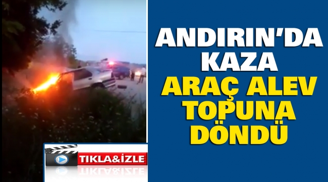 Kahramanmaraş’ın Andırın ilçesi ile Kadirli arasında trafik kazasının ardından kazaya karışan araçlardan biri alev topuna döndü.