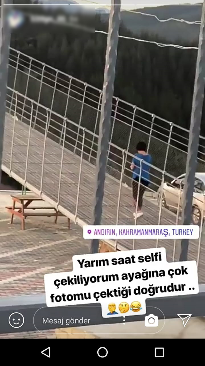Andırın Belediye Başkanı Baki Tezcan’ın belediyenin imkanlarıyla yaptırdığı ve İngiltere’den ödül alan 4 minareli köprüde yürüyen bir kadının fotoğrafını çeken ve hikaye olarak paylaşan AK Parti Andırın Siyasi ve Hukuki İşler Başkanı E. B., hikayeye yazdığı yazıyla tepkileri üzerine çekti.E. B., hikayesine “Yarım saat selfi çekiliyorum ayağına çok fotomu çektiği doğrudur” yazarak kadının fotoğrafıyla beraber İnstagram hesabında paylaştı.