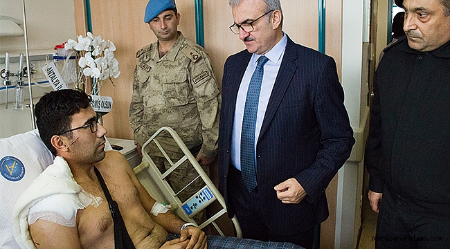 Antalya Valisi Münir Karaloğlu, iki yıldır aranan firari Abdullah Özer'in ateş açması sonucu yaralanan uzman çavuşlar İbrahim Güngör ve Ahmet Kaba'yı ziyaret etti.