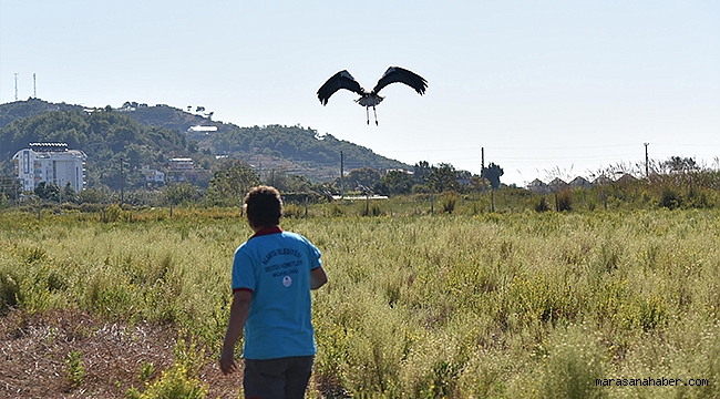 Antalya'nın Alanya ilçesinde tedavisi tamamlanan leylek doğaya bırakıldı.