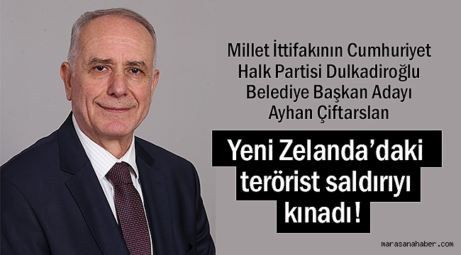 Millet İttifakının Cumhuriyet Halk Partisi Dulkadiroğlu Belediye Başkan Adayı Ayhan Çiftarslan, Yeni Zelanda’da ibadet etmekte olan Müslümanlara camide yapılan terör saldırısında hayatını kaybedenlere Allah’tan rahmet diledi.