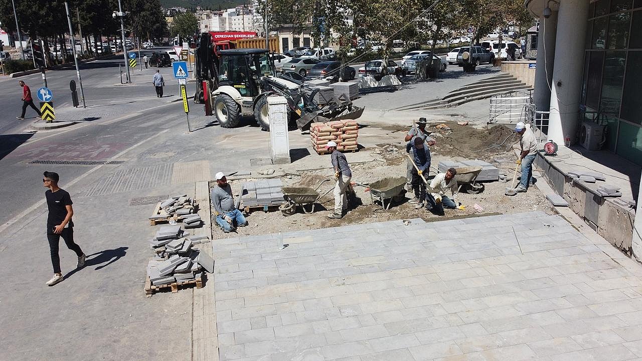 Büyükşehir Belediyesi, Azerbaycan Bulvarı’nda deforme olan yürüyüş yollarını yeniliyor.