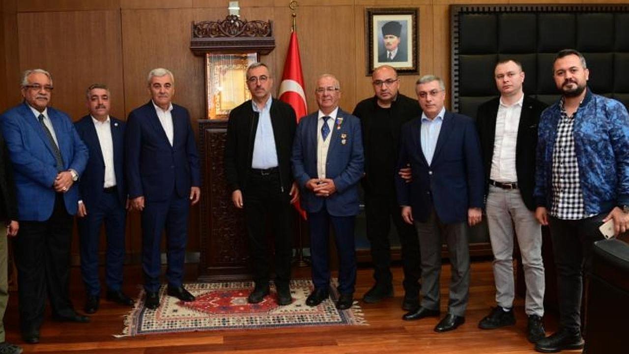 Kahramanmaraş Büyükşehir Belediye Başkanı Hayrettin Güngör, AK Parti 28. Dönem Kahramanmaraş Milletvekili Adayı Mehmet Şahin ile bir dizi ziyarette bulunmak üzere şehre gelen Azerbaycan Diaspora Bakan Yardımcısı ValehHacıyev, Destek Vakfı Başkanı AkramAbdullayev, Türkiye Azerbaycan Dernekleri Başkan Vekili ParvizMammadzade ve Diaspora Üyesi Hidayet Gülam’ı makamında ağırladı. Şehrin tekrar ihya ve inşası noktasında gerçekleştirilen ve planlanan çalışmaların görüşüldüğü ziyarette heyet, 6 Şubat’ta meydana gelen depremler dolayısıyla Başkan Güngör’e geçmiş olsun dileklerini iletti. Nazik ziyaretleri için heyete teşekkür eden Başkan Güngör, “Bu zor süreçte yanımızda olan, desteklerini eksik etmeyen herkese teşekkür ediyoruz. İnşallah şehrimizi kısa sürede tekrar ayağa kaldıracağız” dedi.