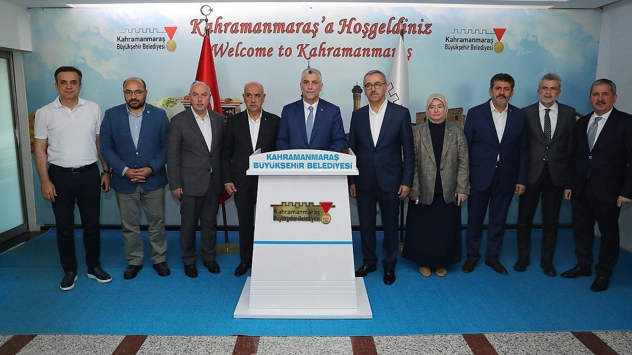 Kahramanmaraş Büyükşehir Belediye Başkanı Hayrettin Güngör, alanda yürütülen çalışmaları yerinde incelemek ve bir dizi ziyarette bulunmak üzere şehre gelen Ticaret Bakanı Prof. Dr. Ömer Bolat’ı makamında ağırladı. TBMM Tarım, Orman ve Köyişleri Komisyonu Başkanı Prof. Dr. Vahit Kirişci, Vali Ömer Faruk Coşkun, AK Parti Kahramanmaraş Milletvekilleri Ömer Oruç Bilal Debgici, Mevlüt Kurt, Dr. Tuba Köksal ve Prof. Dr. Mehmet Şahin, AK Parti İl Başkanı Fırat Görgel ve bakanlık yetkililerinin de yer aldığı programda Başkan Hayrettin Güngör; mikrobölgeleme ve planlama süreci, kentsel tasarım projesi, altyapı yatırımları, ticaret ve sanayi dönüşüm alanları gibi pek çok konuda heyete bilgiler aktardı.