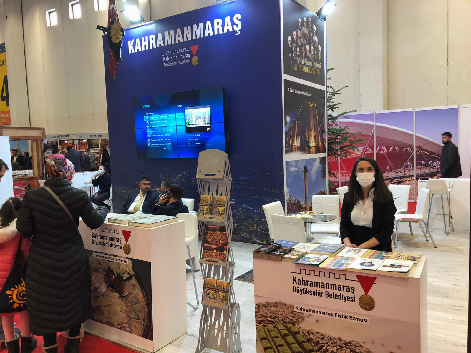 Kahramanmaraş Büyükşehir Belediyesi, İstanbul TÜYAP Kongre ve Fuar Merkezi'nde düzenlenen 25. Doğu Akdeniz Uluslararası Turizm ve Seyahat Fuarı’nda (EMITT) yerini aldı. Dünyanın en büyük beş turizm fuarından birisi olan EMITT, şehirlerin markalaşmasına, kendini tanıtmasına ve turistlerle buluşmasına katkı sağlıyor. Büyükşehir Belediyesi de Kahramanmaraş’ı hem yurt içinden hem de yurt dışından gelen misafirlere tanıtmak ve şehrin değerlerini göstermek için fuarda stant açtı. Kahramanmaraş’ın yerel lezzetlerinin, geleneksel ürünlerinin ve Kültür Yayınları’nın yer aldığı stant, katılımcıların ilgi odağı oldu. Geleneksel el sanatlarından bakır ve ahşap ürünlerin, çarıkların, doldurma tezgâhının ve Eshab-ı Kehf Külliyesi’nin maketinin yer aldığı standı Kültür ve Turizm Bakanı Mehmet Nuri Ersoy da ziyaret etti.
