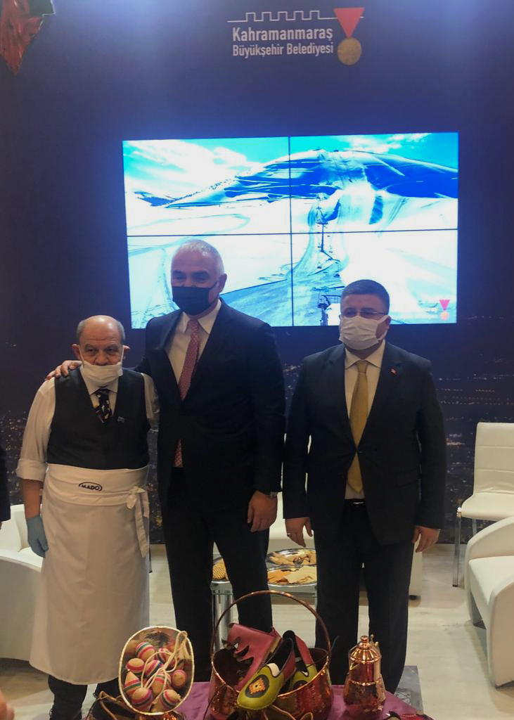 Kahramanmaraş Büyükşehir Belediyesi, 25. Doğu Akdeniz Uluslararası Turizm ve Seyahat Fuarı’nda (EMITT) yerini aldı. Kahramanmaraş’ın geleneksel el sanatlarından yerel lezzetlerine kadar pek çok ürünün tanıtıldığı standı Kültür ve Turizm Bakanı Mehmet Nuri Ersoy ziyaret etti.