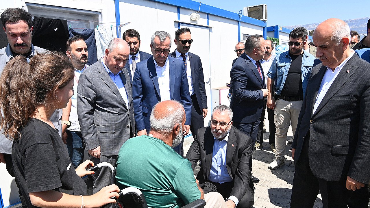 Bakan Işıkhan, Geçici Barınma Merkezinde Depremzedelerle BuluştuÇalışma ve Sosyal Güvenlik Bakanı Prof. Dr. Vedat Işıkhan ve beraberindeki heyetin Afet Koordinasyon Merkezi’nden sonraki durağı ise Baykar Geçici Konaklama Merkezi oldu. Konteyner kentte depremzedelerle bir araya gelen heyet, vatandaşlarla sohbet ederek acılarını paylaştı.