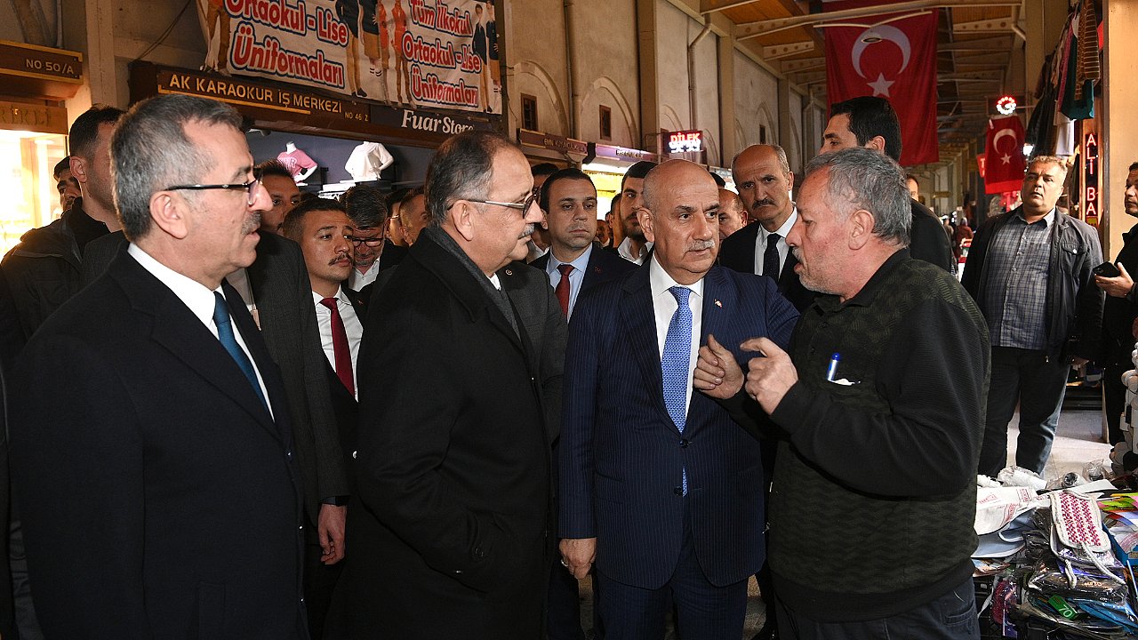 66. Hükümet Tarım ve Orman Bakanı Prof. Dr. Vahit Kirişci, Vali Mükerrem Ünlüer, AK Parti Kahramanmaraş Milletvekili Prof. Dr. Mehmet Şahin, AK Parti İl Başkanı Cüneyt Doğan, MHP İl Başkanı Hüseyin Vahit Demiröz ve Büyükşehir Belediye Başkan Adayı Fırat Görgel’in de yer aldığı ziyarette esnafın taleplerini dinleyen Bakan Özhaseki, yeni Kahramanmaraş vizyonu doğrultusunda yürütülen ve planlanan yatırımlara ilişkin de bilgiler aktardı.