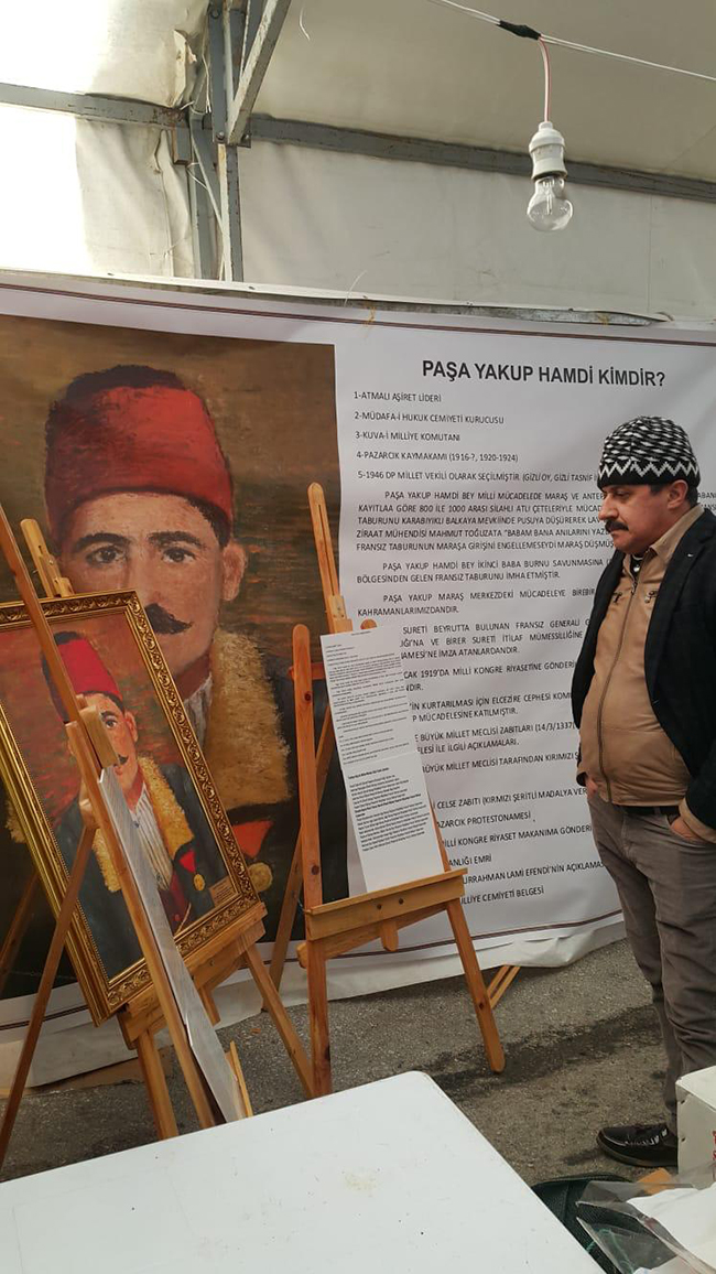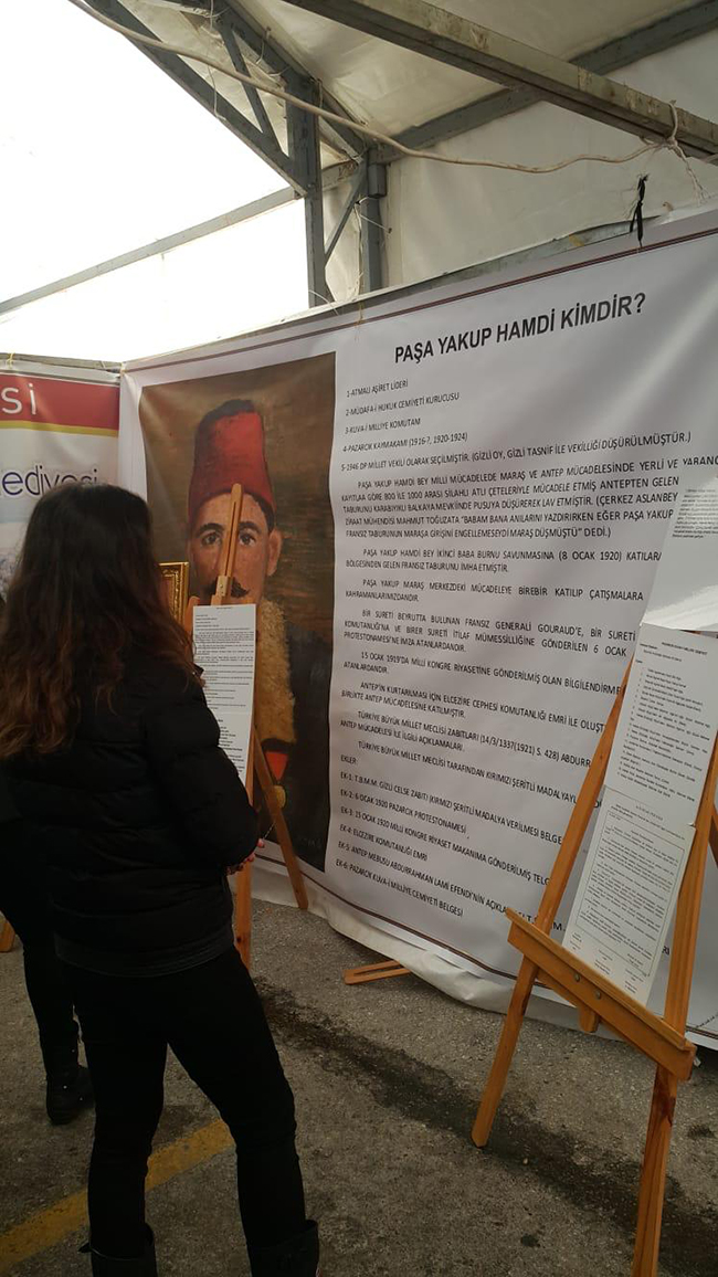 Paşa Yakup Hamdi Bey Kimdir?Paşa Yakup Hamdi Bey; Atmalı Aşiret Lideri, Müdafa-i Hukuk Cemiyeti Kurucusu, Kuva-i Milliye Komutanı Pazarcık Kaymakamı’dır (1916-?, 1920-1924). 1946 yılında DP Milletvekili olarak seçilmiştir. (Gizli oy, gizli tasnif ile vekilliği düşürülmüştür.) paşa yakup hamdi bey Milli Mücadelede Maraş ve Antep mücadelesinde yerli ve yabancı kayıtlara göre; 800 ile 1000 arası silahlı atlı çeteleriyle mücadele etmiş Antep’ten gelen Fransız taburunu Karabıyıklı Balkaya Mevkiinde pusuya düşürerek lağvetmiştir. Paşa Yakup Hamdi Bey İkinci Baba Burnu Savunmasına (8 Ocak 1920) katılarak İslahiye bölgesinden gelen Fransız taburunu imha etmiştir. Paşa Yakup Maraş merkezdeki mücadeleye birebir katılıp çatışmalara dâhil olan kahramanlarımızdandır. Bir sureti Beyrut’ta bulunan Fransız Generali Gouraud’e, bir sureti Adana İşgal Komutanlığı’na ve birer sureti itilaf mümessilliğine gönderilen 6 Ocak 1920 Pazarcık Protestonamesi’ne imza atanlardandır. 15 Ocak 1919’da Milli Kongre Riyasetine gönderilmiş olan bilgilendirme telgrafına imza atanlardandır. Antep’in kurtarılması için Elcezire Cephesi Komutanlığı emri ile oluşturulan kuvvetlerle birlikte Antep mücadelesine katılmıştır. Türkiye Büyük Millet Meclisi tarafından kırımızı şeritli madalyayla ödüllendirilmiştir.