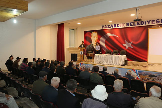 ÇEVRE YOLU PAZARCIK’A HAYIRLI OLSUN!Pazarcık Belediye Başkanı Yakup Hamdi Bozdağ’ın girişimleri neticesinde Pazarcık ilçesine yapılacak olan 11,5 KM çevre yolunun kamulaştırma toplantısı yapıldı.Pazarcık Belediyesi konferans salonunda gerçekleştirilen bilgilendirme toplantısına Pazarcık Kaymakamı Adil Nas, Pazarcık Belediye Başkanı Yakup Hamdi Bozdağ, Karayolları 5. Bölge Müdürlüğü Kamulaştırma Dairesinden Baş Mühendis Yunus Yavuz ve çevre yolu güzergâhında taşınmazları bulunan vatandaşlar katıldı.