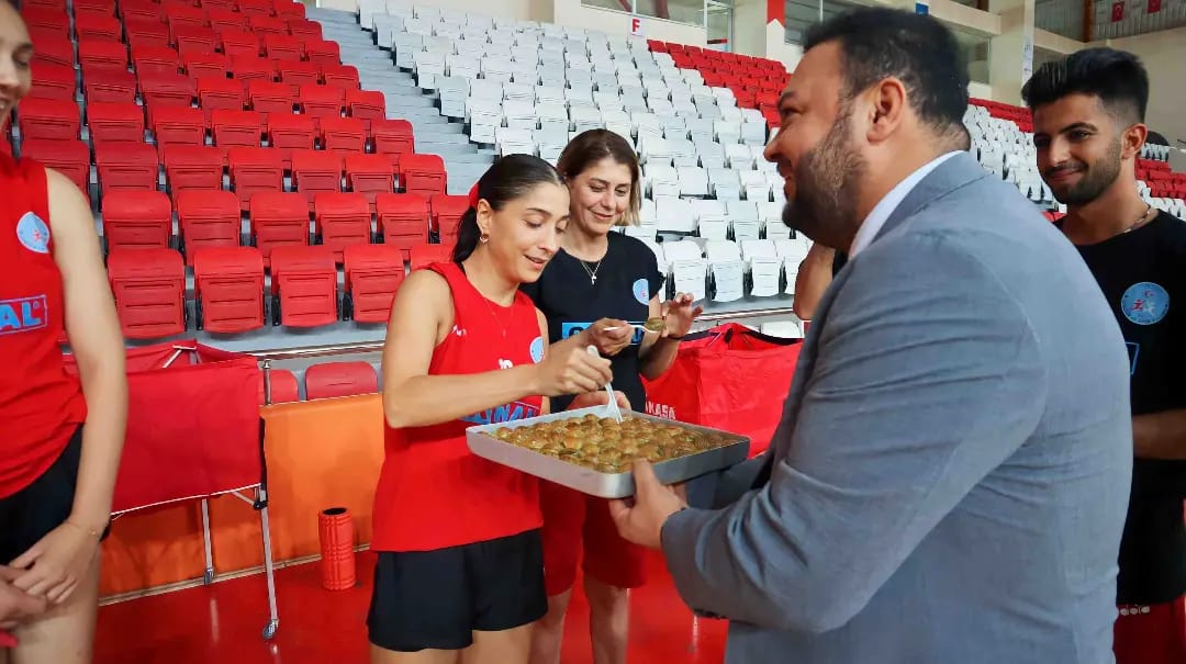 Takıma tatlı ikramında bulunan İYİ Partili heyet, antrenmanı izledikten sonra yeni sezonda başarı dileklerinde bulundular.