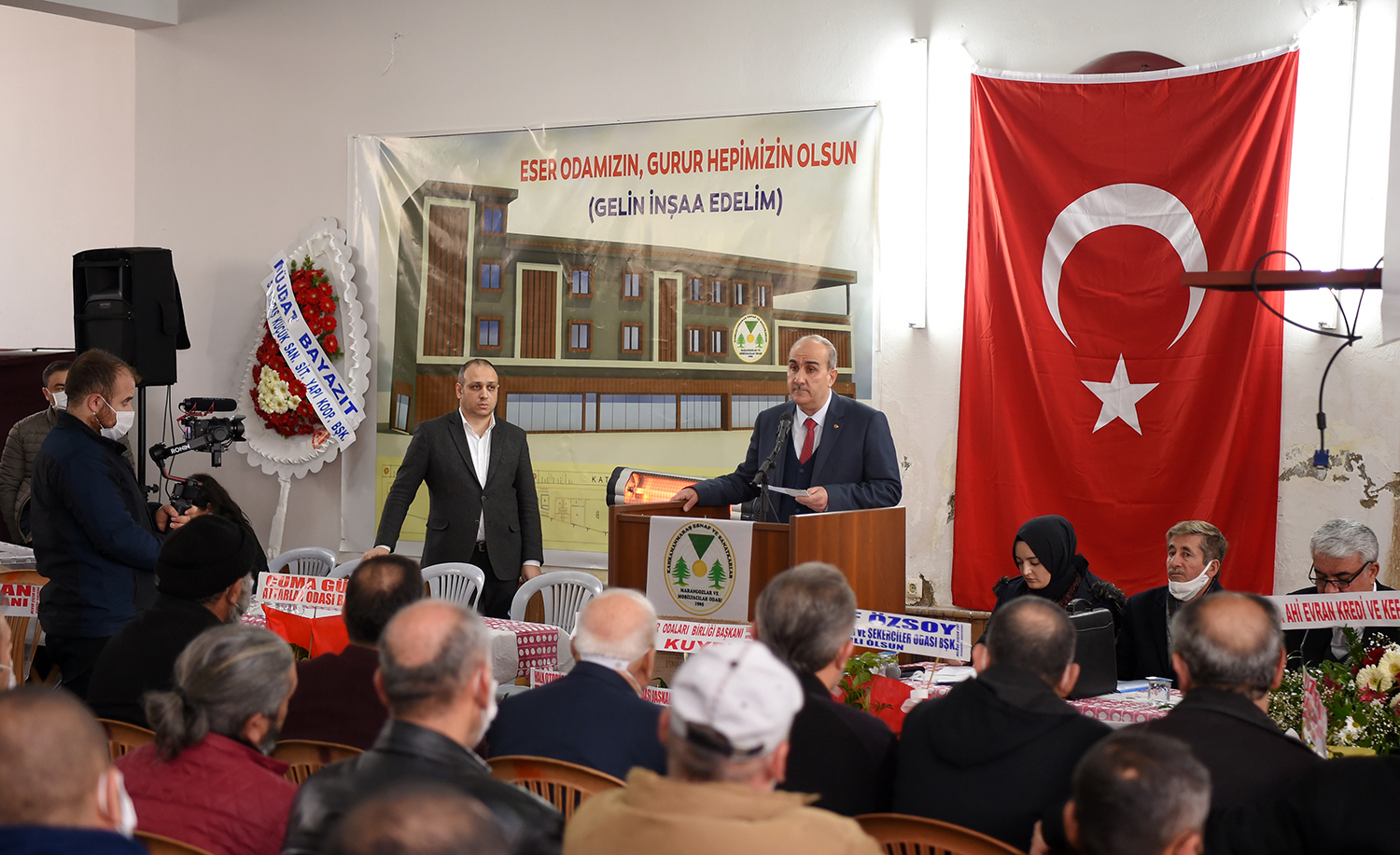 Konuşmasında Marangozlar ve Mobilyacıların tüm sorunlarının çözüme kavuşturulacağını ifade eden Başkan Çelebi, yeni oda binası çalışmalarının da müjdesini verdi. Bu projeyle odanın güç kazanacağını ifade eden Çelebi, yaptığı konuşmasını şu şekilde sürdürdü: “Kıymetli meslektaşlarım, saygı değer üyelerimiz. Sizlerle birlikte üç dönemdir odamızın gelişmesi ve kalkınması adına yol yürümekteyim. Teveccühünüz ve inancınızla bir dönemin daha kapılarını açtık. Bundan sonraki süreçte yarım kalan ve eksik gördüğümüz işlerle alakalı çalışmaları hızlandıracağız. İnşallah bu dönem oda binamızı tamamlayarak hizmetinize sunacağız. Birlik ve beraberlik içerisinde yol yürümeyi sürdüreceğiz.”