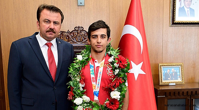 Arjantin’in Buenos Aires kentinde düzenlenen Gençlik Olimpiyatları 2018’te bronz madalya alarak Olimpiyat 3.’sü olan Halil Gökdeniz, Kahramanmaraş Büyükşehir Belediye Başkanı Fatih Mehmet Erkoç’u ziyaret etti.