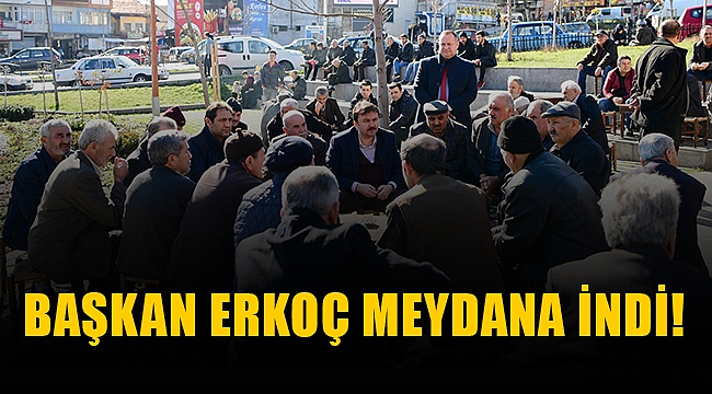 Meydanı’nı dolduran vatandaşları ziyaret eden Başkan Erkoç, vatandaşlarla çay