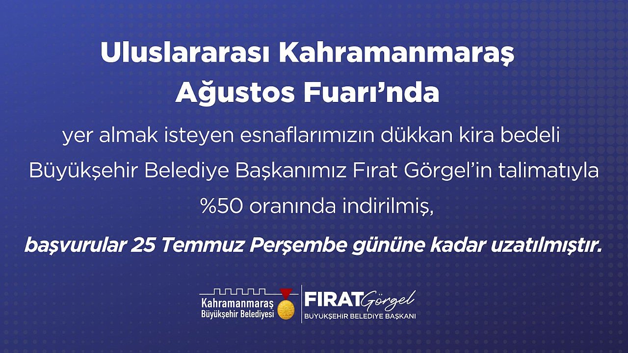 Başkan Fırat Görgel’in talimatıyla, fuarda yer almak isteyen esnafların dükkân kira bedeli %50 oranında indirildi.