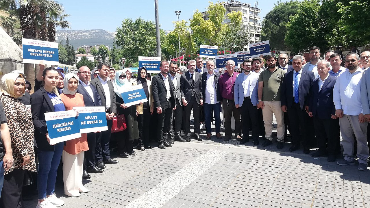 Burada açıklama yapan Başkan Görgel, şunları kaydetti: “Aziz Milletimiz, medeniyet tarihi boyunca türlü fedakârlıklarla devlet olarak kalmak uğruna birçok bedel ödemiştir. Bağımsızlığı uğruna her şartta mücadele eden Milletimiz, hukukun ve demokrasinin vesayet altına alındığı birçok dönemden geçmiş ve bu günlere gelmiştir. Vesayet, hüküm sürdüğü her dönemde haksız ve hukuksuz olarak masum insanların kanına girmiş, vatansever milletin evlatlarını postallarıyla ezmiştir. Türkiye birçok kez darbelere maruz kalmıştır. Bu darbeler milletimizin bünyesindeki demokrasi, ekonomi, insan hakları, sivil ve sosyal hayat unsurlarına zarar vermiştir. Türkiye Cumhuriyeti Devleti’nde, hukukun askıya alındığı, toplumsal ve siyasal düzene ilk darbe; 27 Mayıs 1960’ta, Başbakan Adnan Menderes ile yol arkadaşlarının tutuklanması ve idam edilmesiyle gerçekleştirilmiştir. 27 Mayıs Darbesi, milli irade ile arasına perde çekenlerin demokrasiye, vicdanlara, hukuka ve insanlığa yönelik ihaneti olarak hafızalarımıza kazınmıştır. 1950 yılında dönemin tek parti hegemonyasını geride bırakarak milli iradenin teveccühü ile iktidara gelen Adnan Menderes ve yol arkadaşları, kısa zamanda ortaya koydukları yatırımlar ve hayata geçirdikleri projeler ile Türkiye’yi bir adım ileri taşımışlardır. Milletimizin milli ve manevi değerlerini Anadolu coğrafyasından silmeye çalışan CHP iktidarının antidemokratik uygulamalarını rafa kaldıran merhum Menderes, milletimizin bağrında büyük bir yara olan, tek parti rejiminin en büyük ayıplarından Türkçe Ezanı uygulamasını kaldırarak Anadolu’nun Ezan-ı Muhammedi’ye olan özlemini gidermiştir. Ülkenin ve milletin yararına olan gidişatın önünü tıkamak isteyen vesayetçi odaklar çeşitli yalan ve iftiralar ile 1960 yılında, vesayetin namlusunu Çankaya Köşkü’ne çevirmişlerdir.”
