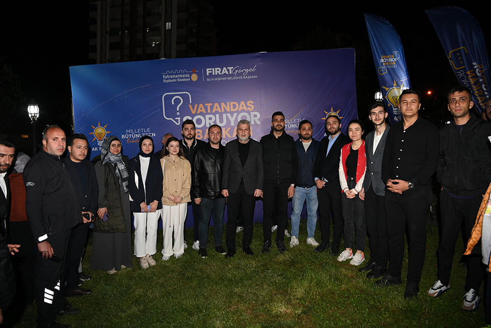 Kahramanmaraş Büyükşehir Belediye Başkanı Fırat Görgel, şehrin farklı noktalarında sürdürdüğü vatandaş buluşmalarına bir yenisini daha ekledi. Aliyaİzzetbegoviç Millet Bahçesi’nde düzenlenen etkinlikte vatandaşlarla bir araya gelen Başkan Görgel, samimi bir atmosferde vatandaşların sorularını yanıtladı, projeleri ve yatırımları hakkında kapsamlı bilgiler verdi.