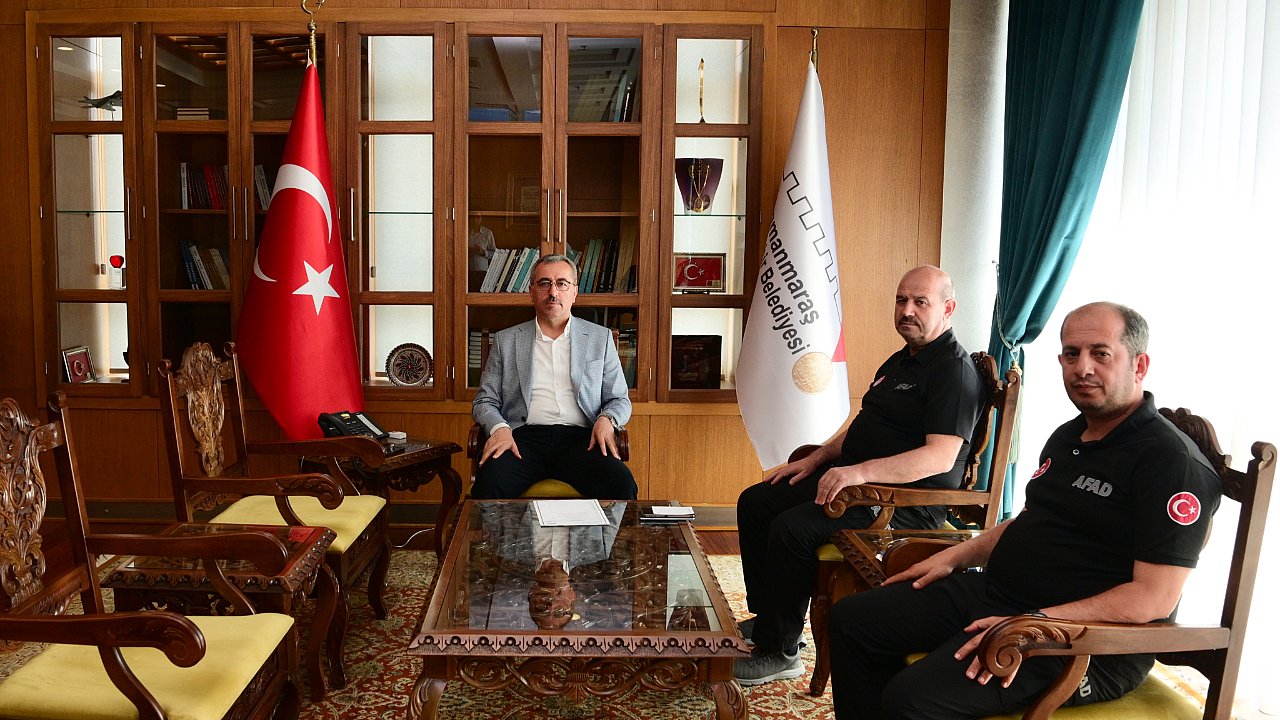 Kahramanmaraş Büyükşehir Belediye Başkanı Hayrettin Güngör, AFAD İl Müdürü Tayfun Temur’u makamında ağırladı. Enkaz kaldırma çalışmaları, geçici barınma merkezleri ve esnaf çarşılarını kapsayan şehir genelinde sürdürülen çalışmaların gündeme alındığı görüşmenin ardından açıklamalarda bulunan Başkan Hayrettin Güngör, “AFAD İl Müdürümüz Tayfun Temur ile bir araya geldik. İş birliği halinde şehir genelinde sürdürdüğümüz çalışmalar ile ilgili istişarelerde bulunduk. Kahramanmaraşımız için gece gündüz çalışmaya devam ediyoruz. Şehrimizi el birliği ile yeniden ayağa kaldıracağız” ifadelerini kullandı.