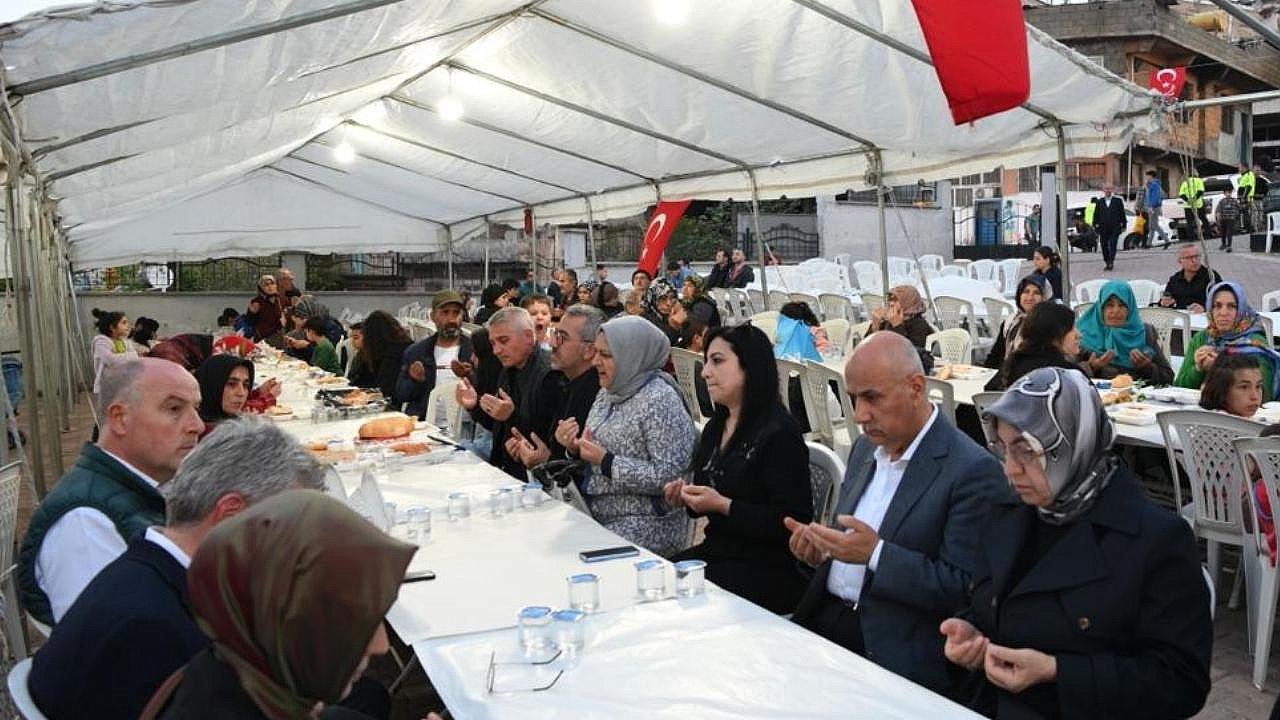Kahramanmaraş Büyükşehir Belediye Başkanı Hayrettin Güngör, Tarım ve Orman Bakanı ve AK Parti Kahramanmaraş Milletvekili Adayı Prof. Dr. Vahit Kirişci ileOnikişubatDumlupınar Şehit Haşim Yenigül Ortaokulu bahçesinde düzenlenen iftar programına katıldı. Birlik ve beraberliğe vesile olan iftar sofralarında vatandaşları tek tek ziyaret ederek Ramazan aylarını tebrik eden Başkan Güngör, “Bu akşamki iftarımızı Tarım ve Orman Bakanımız Sayın Vahit Kirişci’nin katılımlarıyla Dumlupınar Şehit Haşim Yenigül Ortaokulu bahçesinde hemşehrilerimizle yaptık. Rabbim oruçlarımızı kabul, birlik ve beraberliğimizi daim, sofralarımızı bereketli eylesin” dedi.