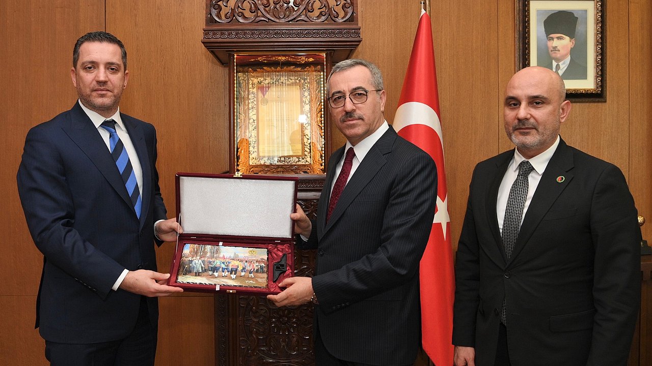 Kahramanmaraş Büyükşehir Belediye Başkanı Hayrettin Güngör, bir dizi programa katılmak için Kahramanmaraş’a gelen Türkiye Barolar Birliği Başkanı Erinç Sağkan ve beraberindeki heyeti makamında ağırladı. Kahramanmaraş Baro Başkanı Muhammed Burak Gül’ün de yer aldığı ziyarette Başkan Hayrettin Güngör; istiklal ve istikbalin öncü şehri Kahramanmaraş’ın Milli Mücadelesi, İstiklal Madalyası, yöresel lezzetleri ve geleneksel el sanatları hakkında misafirlerine bilgiler aktardı. Başkan Hayrettin Güngör, nazik ziyaretleri için Türkiye Barolar Birliği Başkanı Erinç Sağkan’a teşekkür ederek,Büyükşehir Yayınları’ndan hediye etti.