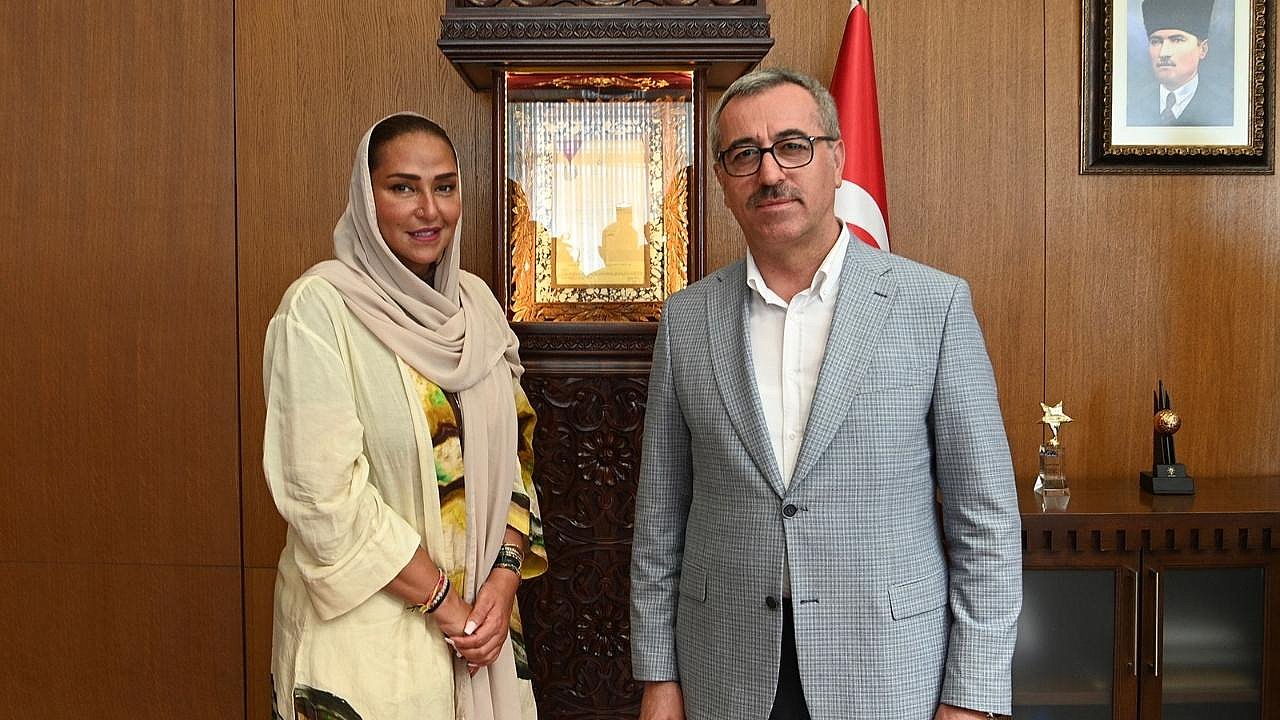 Büyükşehir Belediye Başkanı Hayrettin Güngör, programı kapsamında şehre gelen BM Habitat İyi Niyet Elçisi veSuudi Arabistan Prensesi Lamia Bint Majid Al Saud’u makamında ağırladı.