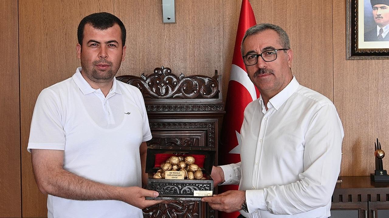 Kahramanmaraş Büyükşehir Belediye Başkanı Hayrettin Güngör, Çağlayancerit Belediye Başkanı Hanifi Sarıaltun ve AK Parti İlçe Başkanı Mehmet Berk ile bir araya geldi. KASKİ Genel Müdürü Ahmet Kavak’ın da hazır bulunduğu ziyarette; Çağlayancerit’te yürütülen ve planlanan alt ve üstyapı yatırımları, ilçenin katma değerinin artırılması noktasında gerçekleştirilen faaliyetler ve mahallelerin ihtiyaçları gibi konular değerlendirildi. Ziyaretleri için Hanifi Sarıaltun ve Mehmet Berk’e teşekkür eden Başkan Güngör, “Çağlayancerit Belediye Başkanımız Hanifi Sarıaltun ve ilçe başkanımız Mehmet Berk misafirimiz oldu. İlçemizde yürüttüğümüz ve planladığımız yatırımlarımızı değerlendirdik. AB tescilli Çağlayancerit Cevizi’mizin katma değerinin artırılması noktasında gerçekleştirilecek çalışmaları istişare ettik. Daha gelişmiş ve kalkınmış Çağlayancerit için ilçe belediyemiz, teşkilatımız ve tüm paydaşlarımızla yoğun gayret gösteriyoruz” dedi.