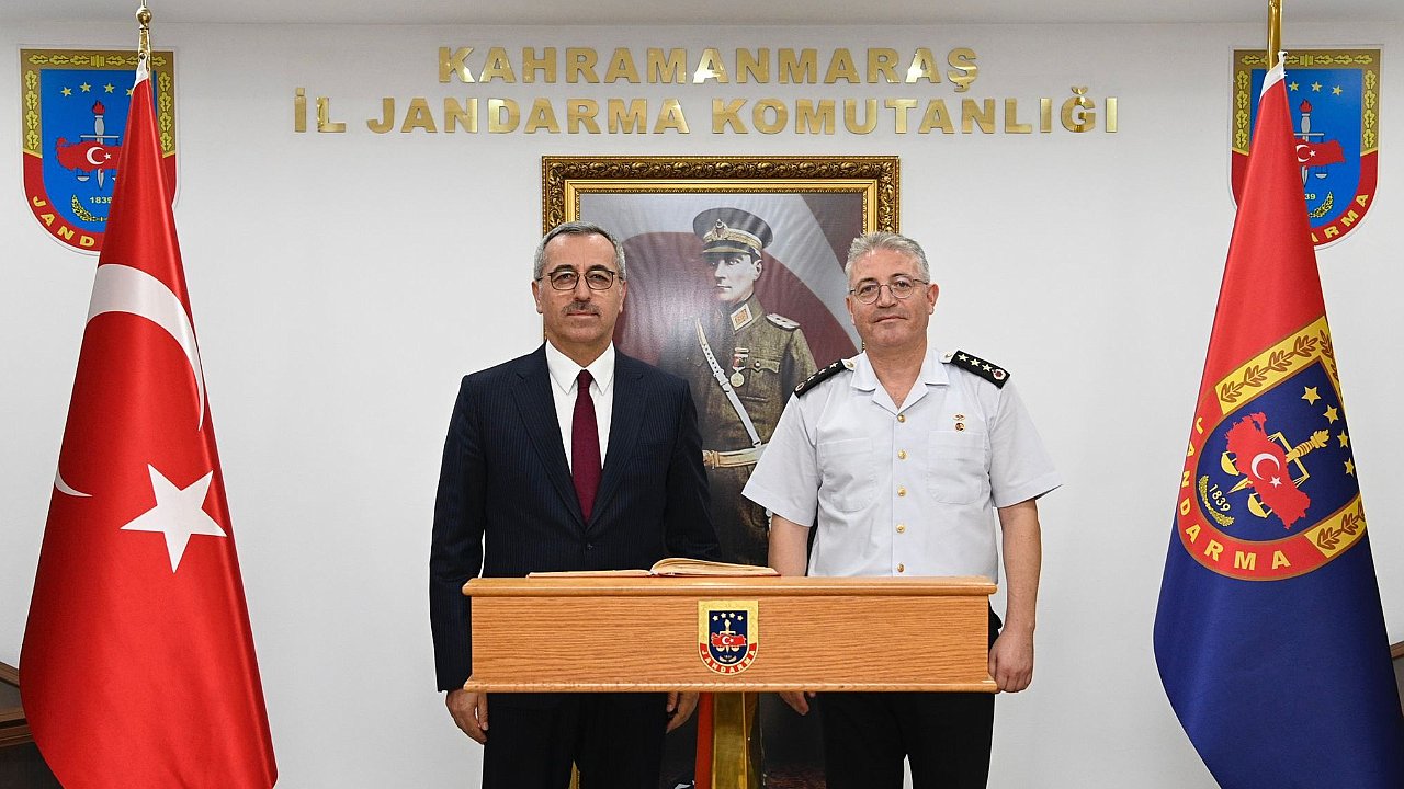 Kahramanmaraş Büyükşehir Belediye Başkanı Hayrettin Güngör, İl Jandarma Komutanı olarak atanan Albay Tolga Yağan’a hayırlı olsun ziyaretinde bulundu. İl Jandarma Komutanı Albay Yağan’a yeni görevinde başarı dileyen Başkan Hayrettin Güngör, “Kahramanmaraş İl Jandarma Komutanı olarak atanan Albay Tolga Yağan’a hayırlı olsun ziyaretinde bulunduk. İl Jandarma Komutanımıza yeni görevinde muvaffakiyetler diliyorum. Tüm paydaşlarımızla birlikte Kahramanmaraş’ımız için yüksek bir koordinasyonla çalışmaya devam edeceğiz” dedi.
