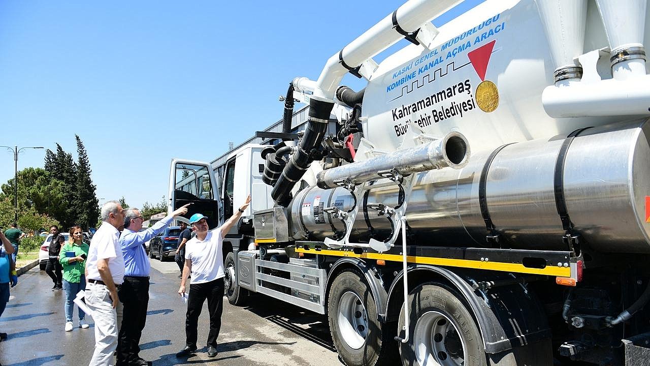 Kahramanmaraş Büyükşehir Belediye Başkanı Hayrettin Güngör, KASKİ Genel Müdürlüğü’nü ziyaret ederek personellerle bir araya geldi. AFAD tarafından KASKİ’nin araç filosuna kazandırılan kombine kanal açma aracını inceleyen ve araca ilişkin bilgiler alan Başkan Hayrettin Güngör, “Bugün KASKİ’yi ziyaret ederek sahadaki çalışmalarla ilgili bilgi aldık. Şehrimizin alt ve üstyapısıyla tekrar ayağa kaldırılması noktasında koordineli bir şekilde çalışmalarımızı sürdürüyoruz. Bu noktada büyük fedakârlık gösteren herkese teşekkür ediyoruz. AFAD tarafından KASKİ’nin filosuna bir kombine kanal açma aracı da kazandırıldı. Altyapı alanında faaliyet gösterecek önemli bir araç, şehrimize hayırlı olsun” dedi.