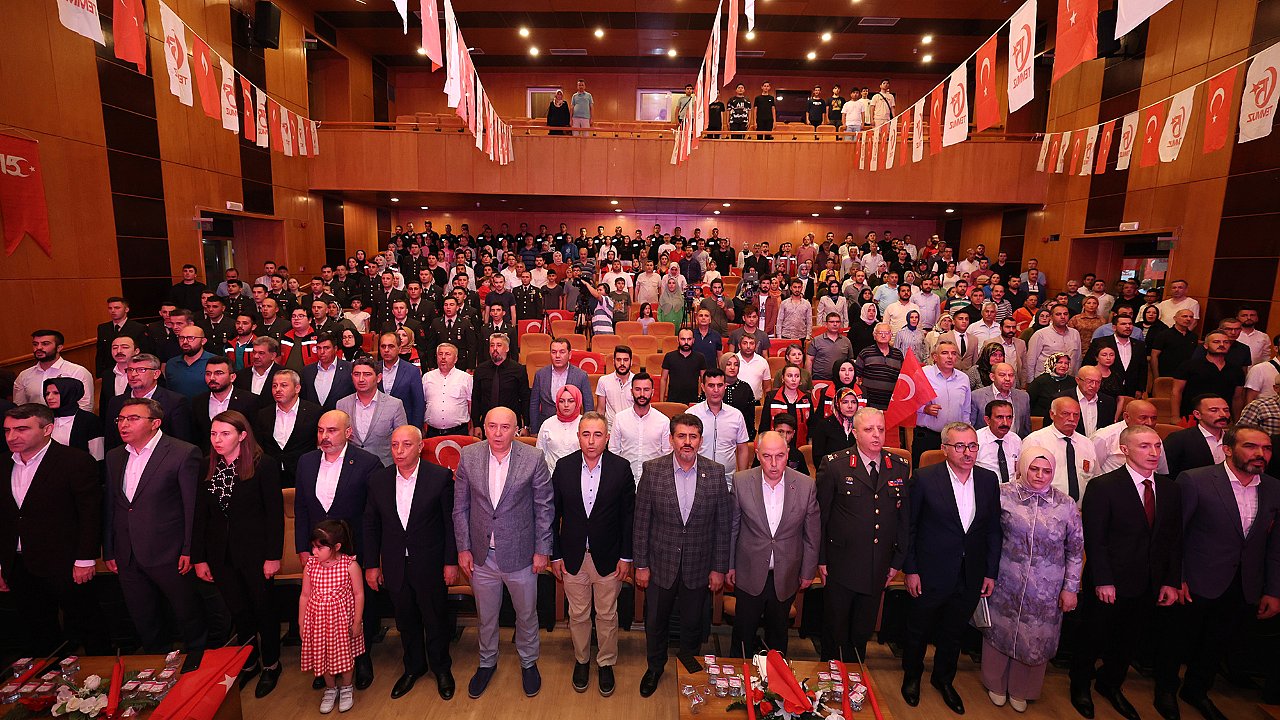 Kahramanmaraş Büyükşehir Belediyesi ve Valilik iş birliğiyle 15 Temmuz Demokrasi ve Milli Birlik Günü dolayısıyla anma programı düzenlendi. Necip Fazıl Kısakürek Kültür Merkezi’nde düzenlenen programda; Büyükşehir Belediye Başkanı Hayrettin Güngör’ün yanı sıra Vali Ömer Faruk Coşkun, milletvekilleri, 2. Zırhlı Tugay Komutanı Tuğgeneral Emin Mehmet Terzioğlu, protokol üyeleri, siyasi parti ve STK temsilcileri, şehit aileleri ve yakınları, gaziler ve çok sayıda vatandaş da yer aldı. Saygı duruşu ve İstiklal Marşı’nın okunmasıyla başlayan program, Kur’an-ı Kerim Tilavetiyle devam etti. Cumhurbaşkanı Recep Tayyip Erdoğan’ın 15 Temmuz Demokrasi ve Milli Birlik Günü dolayısıyla İstanbul’da düzenlenen etkinlikte yaptığı konuşmanın katılımcılara izletildiği programda; kısa film gösterimi, mehter konseri, şiir, kaside ve ilahi dinletisi de gerçekleştirildi.Programın açılış konuşmasını yapan Büyükşehir Belediye Başkanı Hayrettin Güngör, “Tarihimizin en büyük ve en sinsi ihaneti olan hain darbe girişiminin yıl dönümündeyiz. Bu vesileyle hem 15 Temmuz şehitlerimizi hem de 6 Şubat depreminde kaybettiğimiz tüm canlarımızı rahmet ve minnetle anıyorum. Gazilerimize şükran ve minnettarlığımızı ifade ediyorum. Asrın felaketinin henüz sıcaklığını yaşıyoruz. Bu duygu ve hüzünle Demokrasi ve Milli Birlik Günümüzü karşılıyoruz. Milletimizin direnci, basireti, birlik ve beraberliği, devlet – millet kenetlenmesi, dost ve kardeşlerimizin desteği hüznümüzü ve acımızı azaltıyor, ümidimizi artırıyor” cümlelerini kaydetti. 15 Temmuz’da Milletin Zaferi Vardı