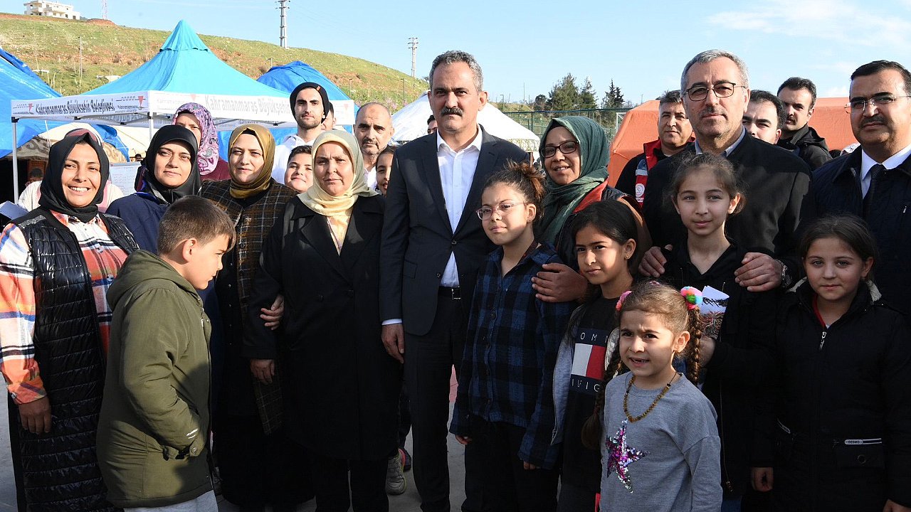 Kahramanmaraş Büyükşehir Belediye Başkanı Hayrettin Güngör, incelemelerde bulunmak ve bir dizi toplantıya katılmak üzere şehre gelen Milli Eğitim Bakanı Mahmut Özer ile Kılavuzlu Geçici Barınma Merkezi’nde çocuklar için oluşturulan eğitim çadırlarını ziyaret etti. Vali Ömer Faruk Coşkun, AK Parti Kahramanmaraş Milletvekili Habibe Öçal ve İl Milli Eğitim Müdürü Yusuf Kahraman’ın da yer aldığı ziyarette çocuklarla bir araya gelerek muhabbet eden Başkan Güngör, öğrencilere eğitim hayatlarında da başarılar diledi.