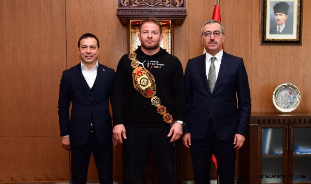 Kahramanmaraş Büyükşehir Belediye Başkanı Hayrettin Güngör, Türkiye Güreş Federasyonu Başkanı Şeref Eroğlu ile bir araya geldi. Kurtuluş Etkinlikleri kapsamında düzenlenen Şalvar Güreşi Dünya Şampiyonası’nda birinci olan Başpehlivan İsmail Balaban’ın da yer aldığı ziyarette gerçekleştirilen etkinlikle ilgili değerlendirmeler yapıldı. Ziyaretten duyduğu memnuniyeti ifade eden Büyükşehir Belediye Başkanı Hayrettin Güngör, “Öncelikle Şalvar Güreşi Dünya Şampiyonası gibi büyük bir organizasyonun şehrimizde düzenlenmesine katkı sağlayan Güreş Federasyonu Başkanımız Şeref Eroğlu’na teşekkür ediyorum. Rakiplerini mağlup ederek şampiyon olan İsmail Balaban’ı da tebrik ediyor, başarılarının devamını diliyorum” dedi.