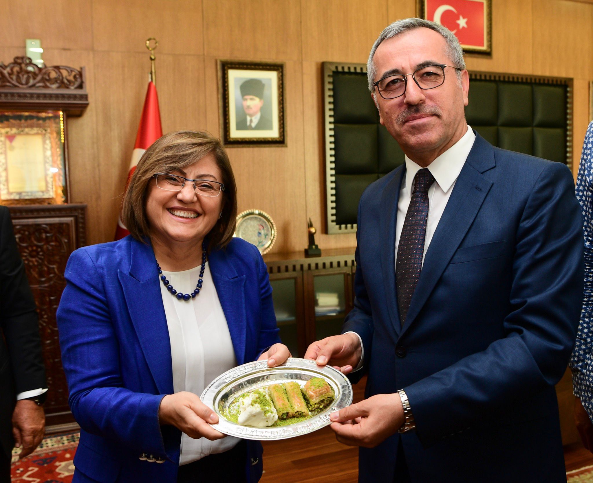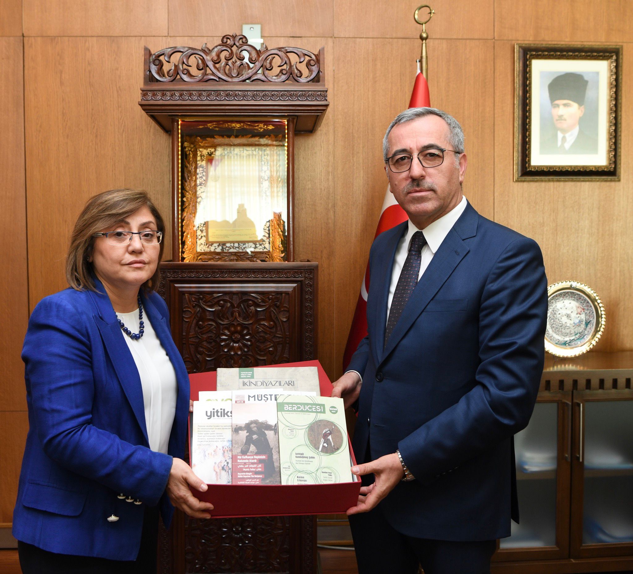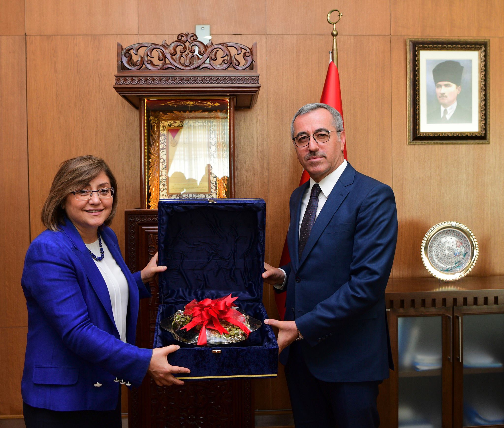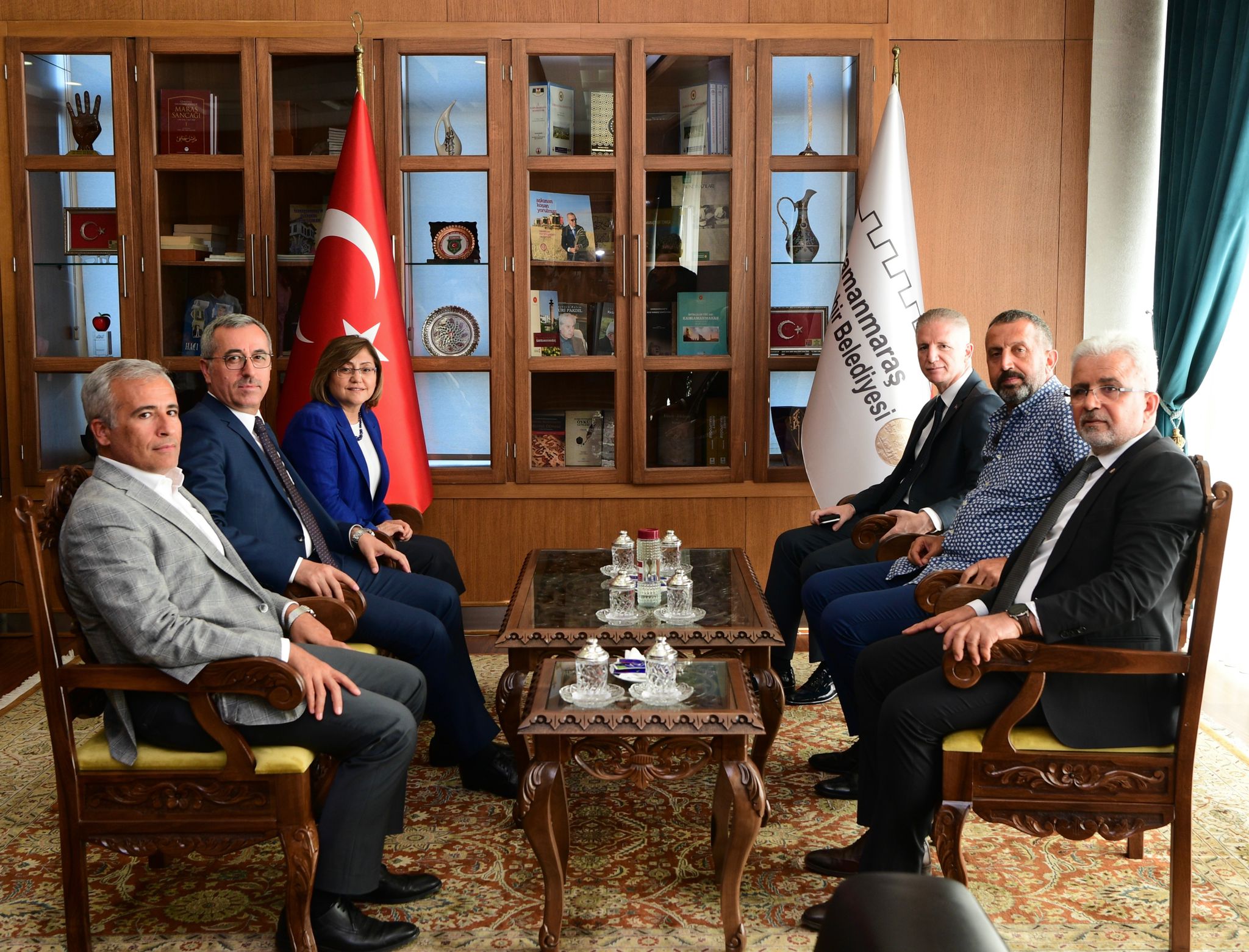 Kahramanmaraş Büyükşehir Belediye Başkanı Hayrettin Güngör, çeşitli ziyaretlerde bulunmak için şehre gelen Gaziantep Valisi Davut Gül ile Türkiye Belediyeler Birliği ve Gaziantep Büyükşehir Belediye Başkanı Fatma Şahin’i makamında ağırladı. Ziyaretten duyduğu memnuniyeti ifade eden Başkan Hayrettin Güngör, Vali Davut Gül ve GBB Başkanı Fatma Şahin’e Büyükşehir Belediyesi Kültür Yayınları ve çeşitli hediyeler takdim etti. Vali Davut Gül ve GBB Başkanı Fatma Şahin de misafirperverliklerinden dolayı Başkan Hayrettin Güngör’e teşekkür etti.