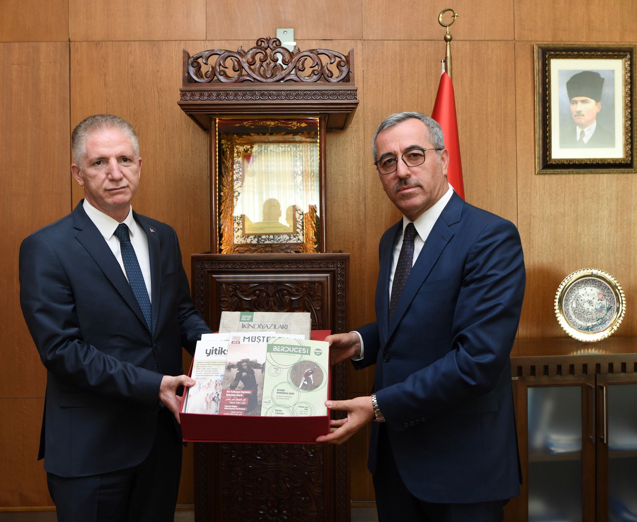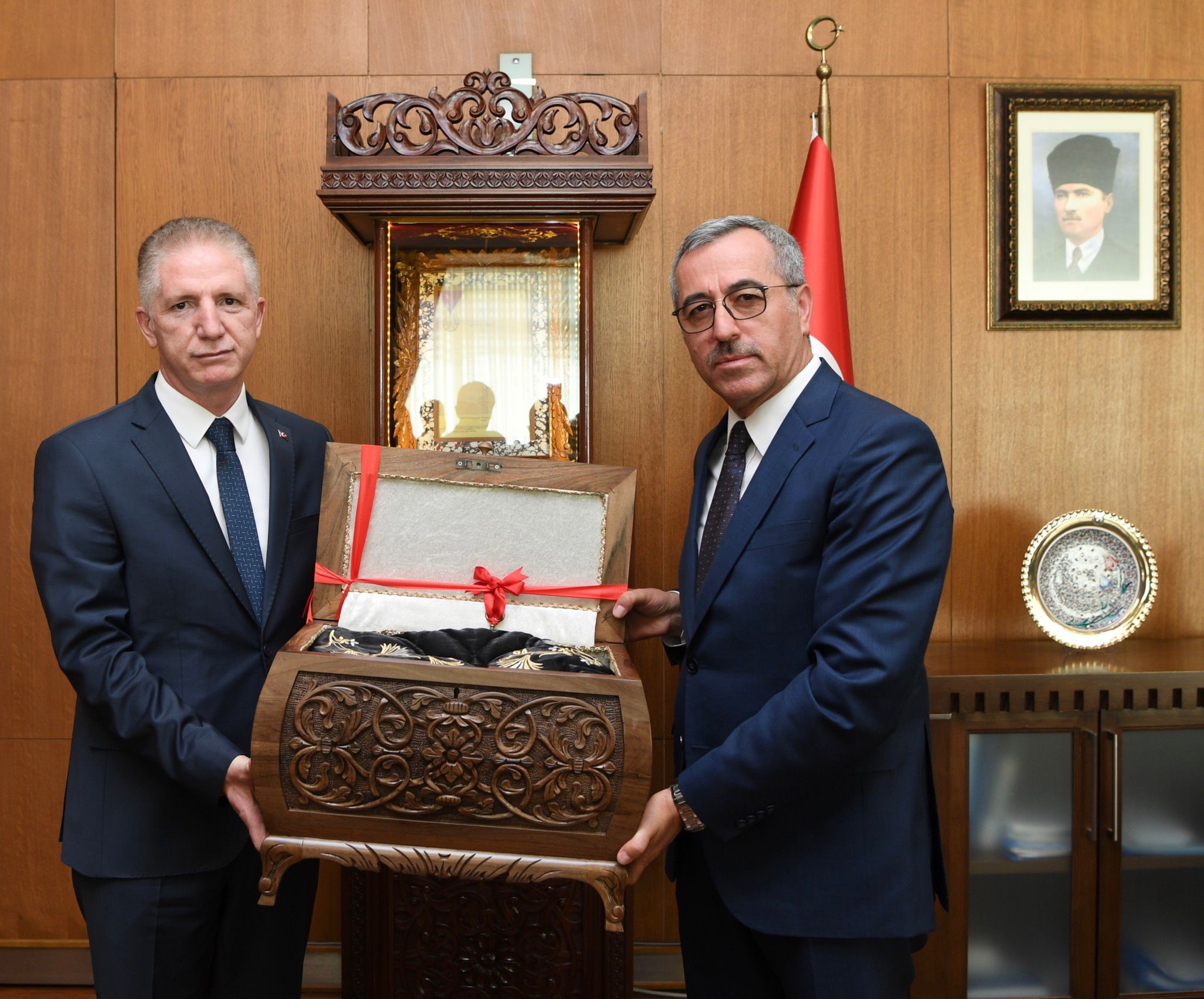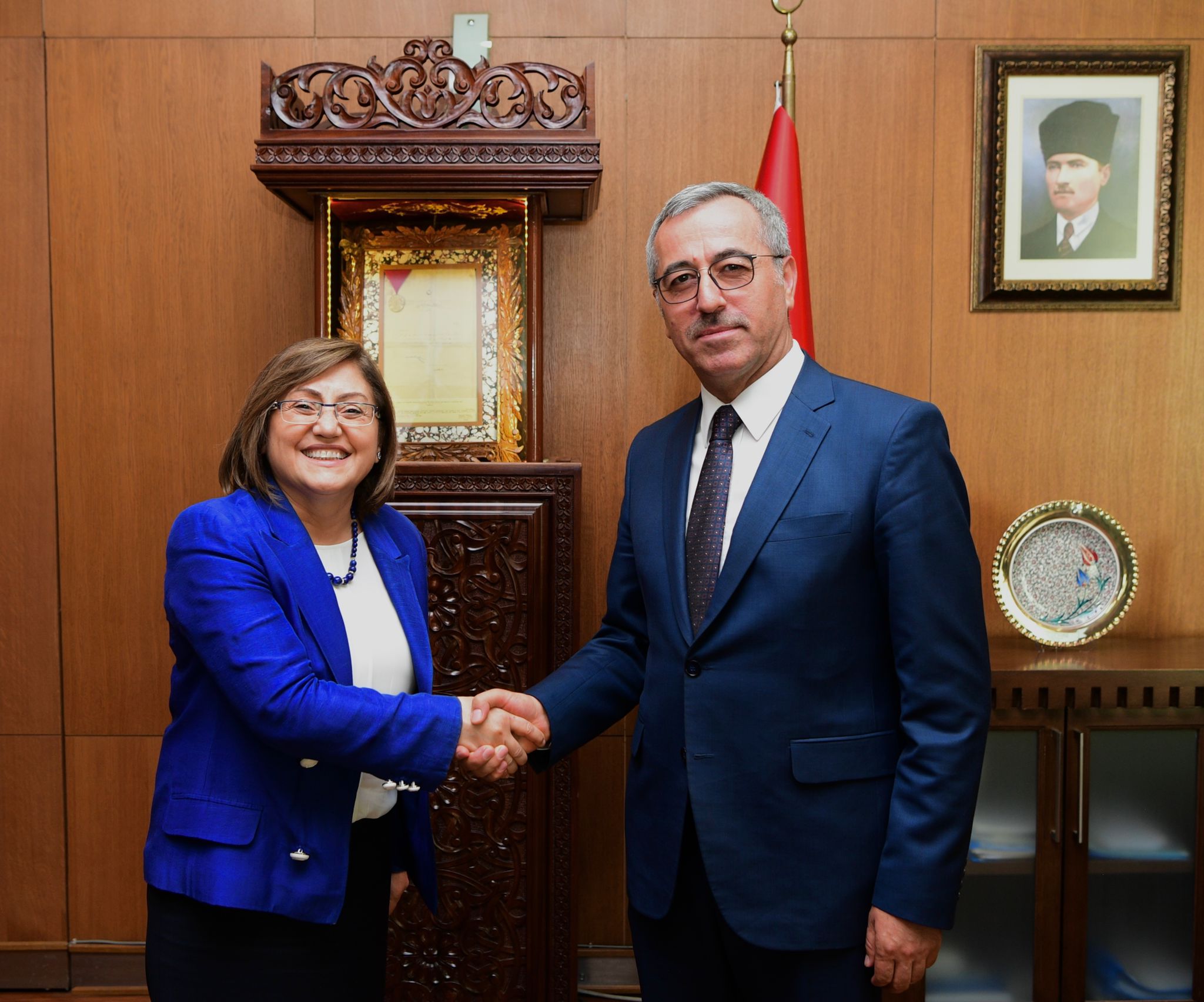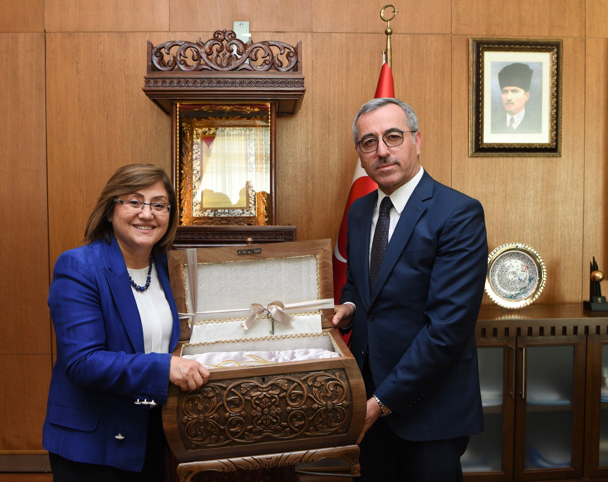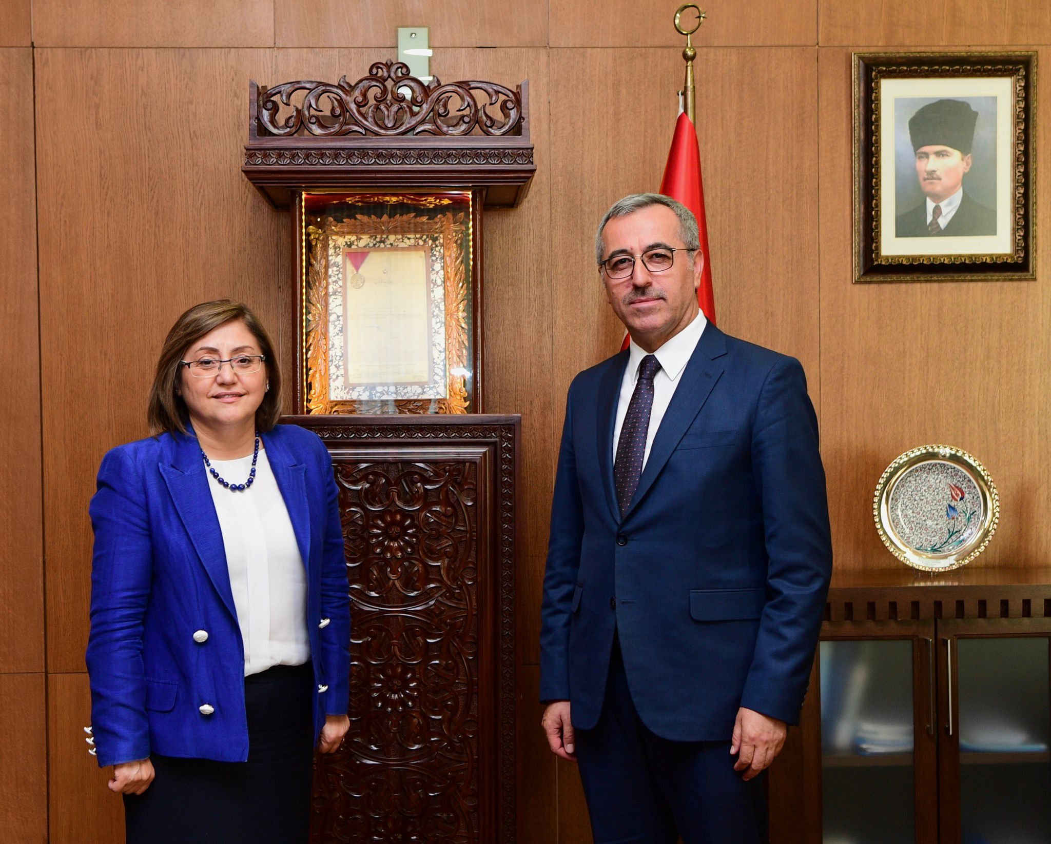 Kahramanmaraş Büyükşehir Belediye Başkanı Hayrettin Güngör, çeşitli ziyaretlerde bulunmak için şehre gelen Gaziantep Valisi Davut Gül ile Türkiye Belediyeler Birliği ve Gaziantep Büyükşehir Belediye Başkanı Fatma Şahin’i makamında ağırladı. Ziyaretten duyduğu memnuniyeti ifade eden Başkan Hayrettin Güngör, Vali Davut Gül ve GBB Başkanı Fatma Şahin’e Büyükşehir Belediyesi Kültür Yayınları ve çeşitli hediyeler takdim etti. Vali Davut Gül ve GBB Başkanı Fatma Şahin de misafirperverliklerinden dolayı Başkan Hayrettin Güngör’e teşekkür etti.