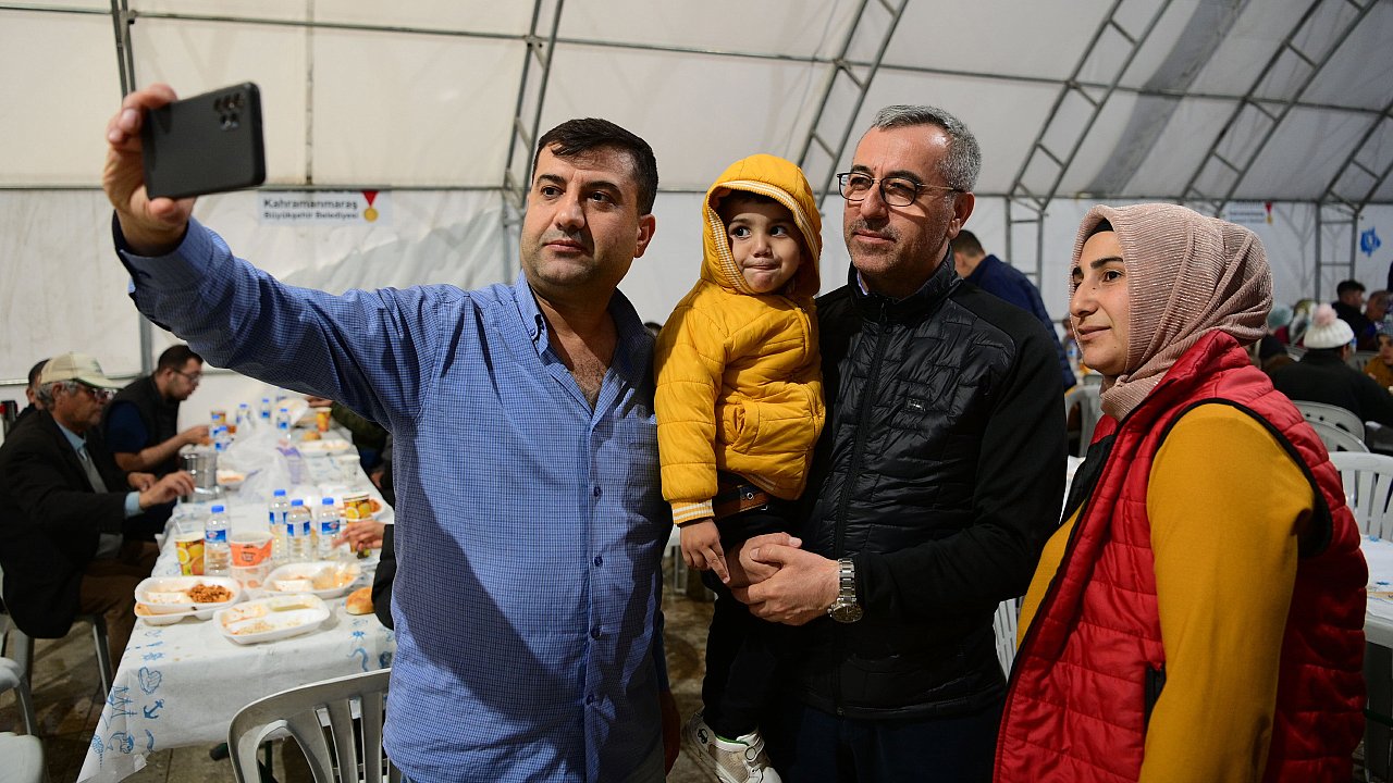Kahramanmaraş Büyükşehir Belediye Başkanı Hayrettin Güngör, Vali Ömer Faruk Coşkun ile Ramazan ayının son gününde Milli İrade Meydanı’ndaki Büyükşehir Belediyesi’nin aşevinde vatandaşlarla birlikte iftar yaptı. İftar çadırında vatandaşlarla bir araya gelerek sohbet eden ve bayramlarını tebrik eden Başkan Güngör, “Bugün de iftar sofralarında hemşehrilerimizle bir araya geldik, orucumuzu açtık. Rabbim tuttuğumuz oruçlarımızı kabul, birlik ve beraberliğimizi daim eylesin. Hamdolsun Ramazan ayımızı hep birlikte eda ettik ve bayrama kavuşuyoruz. Maalesef yaşadığımız büyük felaket dolayısıyla buruk bir bayram geçireceğiz. Asrın felaketinde hayatını kaybeden kardeşlerimize bir kez daha Allah’tan rahmet diliyorum. Bu vesileyle tüm hemşehrilerimizin ve İslam âleminin Ramazan Bayramı’nı tebrik ediyorum” dedi.