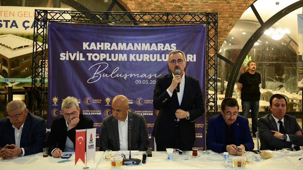 Kahramanmaraş Büyükşehir Belediye Başkanı Hayrettin Güngör, Tarım ve Orman Bakanı ve AK Parti 28. Dönem Kahramanmaraş Milletvekili Adayı Prof. Dr. Vahit Kirişci ile EXPO 2023 Alanı’nda düzenlenen Kahramanmaraş Sivil Toplum Kuruluşları Buluşması’na katıldı. Onikişubat Belediye Başkanı Hanefi Mahçiçek, AK Parti İl Başkanı Fırat Görgel, oda başkanları ve STK temsilcilerinin de yer aldığı programda konuşan Bakan Kirişci; son 21 yılda Türkiye’de eğitimden ulaşıma, sağlıktan teknolojiye tüm alanlarda hayata geçirilen yatırımlar, 14 Mayıs seçimleri, şehirde yürütülen afet ve acil durum çalışmaları gibi pek çok konuya ilişkin değerlendirmelerde bulundu.