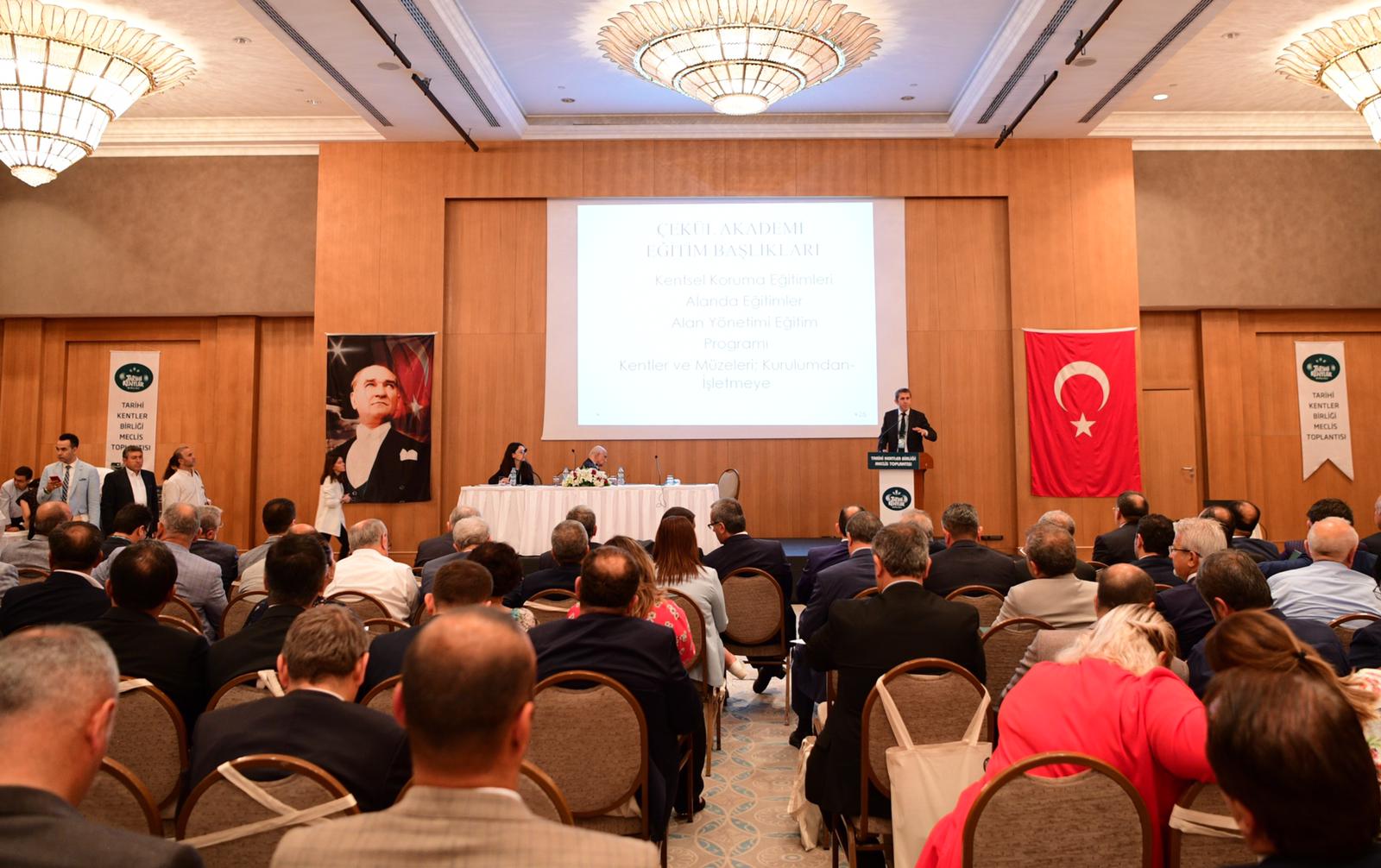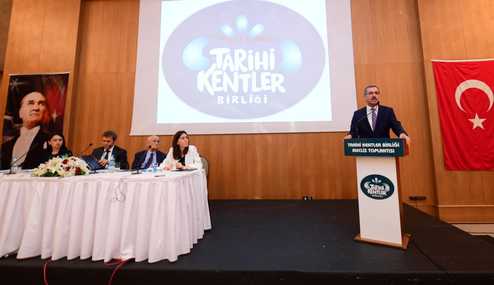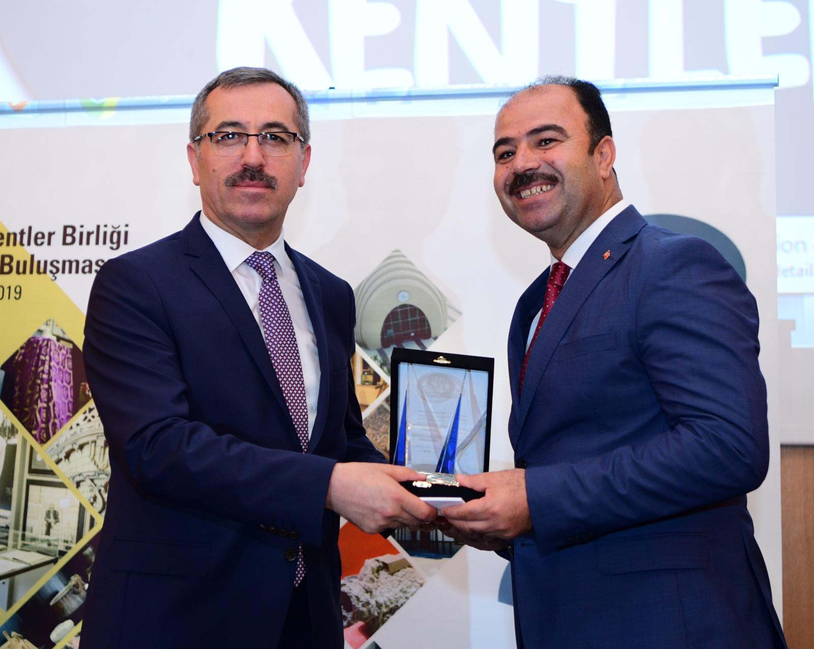 Tarihi Kentler Birliği’ne başkanlık ettiği belirtilerek birer plaket verilerek teşekkür edildi.